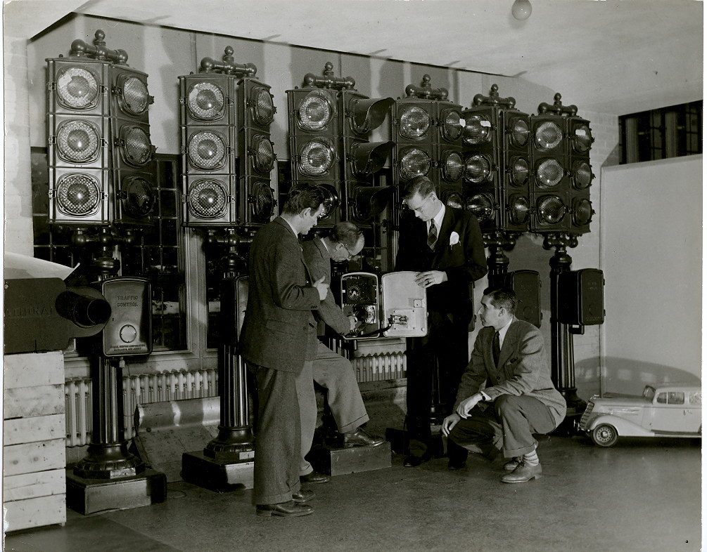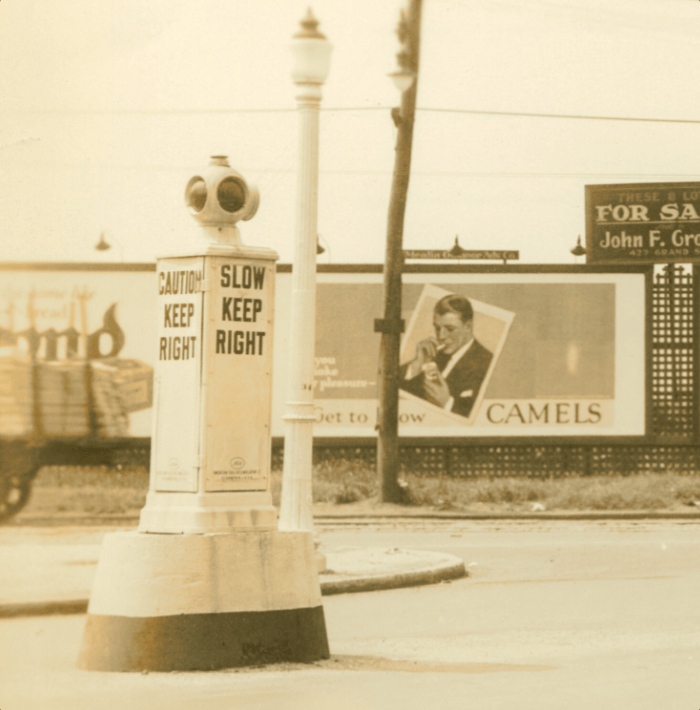 One of the leading brands of traffic control equipment in the early 20th century was American Gas Accumulator (AGA). Founded in Elizabeth, NJ in 1911, AGA was a child company of Aktiebolaget Gas Accumulator of Stockholm, Sweden; a company that, among other things, greatly innovated the design of acetylene lamps for light houses, bouys, and aviation beacons. This page’s banner photo shows the unmistakable silhouette of an AGA traffic signal in Stockholm.