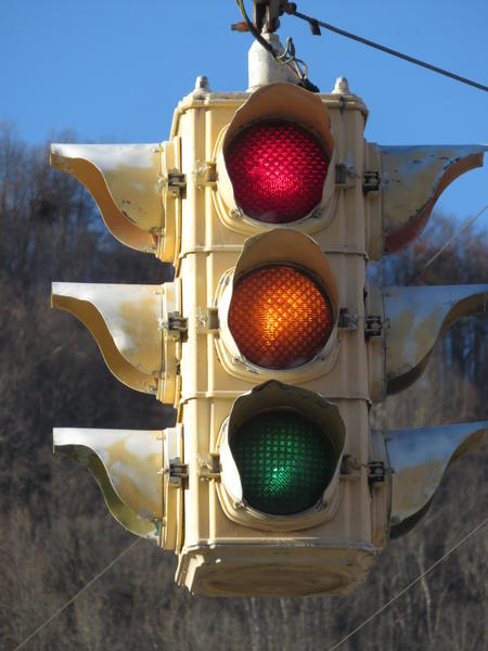 The first two photos in the mosaic above are of the fixed-face 3-way in Hastings-on-Hudson, NY. Still incandescent, and still on the original mast arm with decorative attachments. Note the studded elbow above the hanger! The third photo is of the incandescent (all Kopp #27 lenses) SSC that was recently removed from service in Gassaway, WV. The photographer caught all three colors as they were simultaneously lit by the old cam shaft controller switching from green to red. The last photo was taken in Crafton, PA, in 2019.