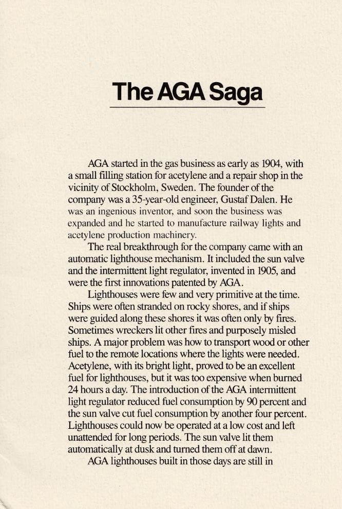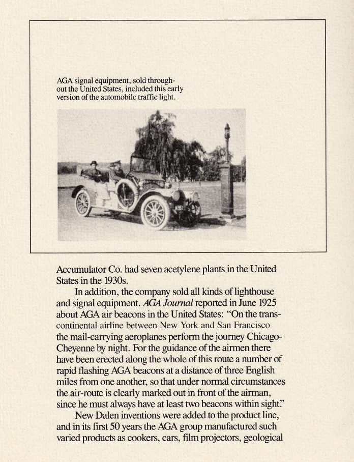 “The AGA Saga”, seen in the mosaic above, is published on the AGA Museum site. More excellent historical information on AGA and its signal division is also provided at the Highway Divides Wiki.