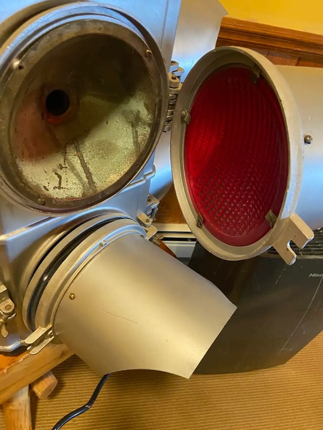 Pre-1931, the circular doors closed over a reflector assembly that swiveled on the same hinge with the lens door. Photos above provided by Marty Regan.