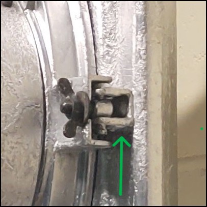 The original AGA lights had two kinds of cast hinge pin retainers; a retainer with two “tiers” on the latch side (left photo, yellow arrow) and one with four tiers on the hinge side (left photo, red arrow). When they switched to the new reflector design, they used the 2-tier cast retainer on both sides for a short time, but they soon replaced that retainer with a cheaper stamped metal retainer (right photo, green arrow). The stamped retainers are much more “common”. UPDATE: The Swedish signal featured above appears to have cast retainers, so that may have been the original design, at least for adjustable signals.
