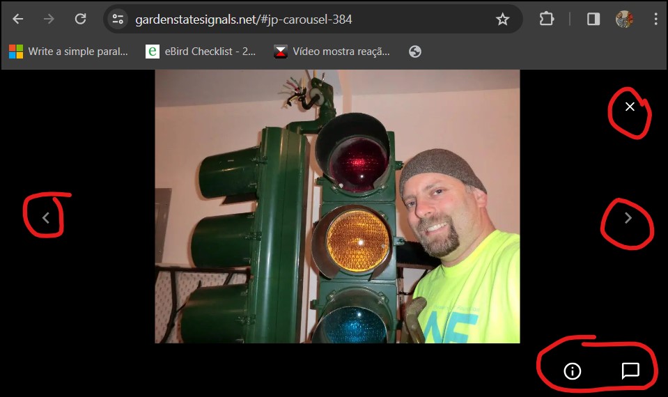 Please be aware that there is an issue affecting the image carousels across this site if you are using the latest version of Chrome or Edge – whether on a mobile device or on a PC/laptop. The image carousel controls (marked in red in the screenshot below) do not work because of this bug. Word Press is working on fixing this issue, which I reported to them on December 13. If you encounter this behavior when you open any image carousels, you can get around it for now by using the Mozilla Firefox browser.