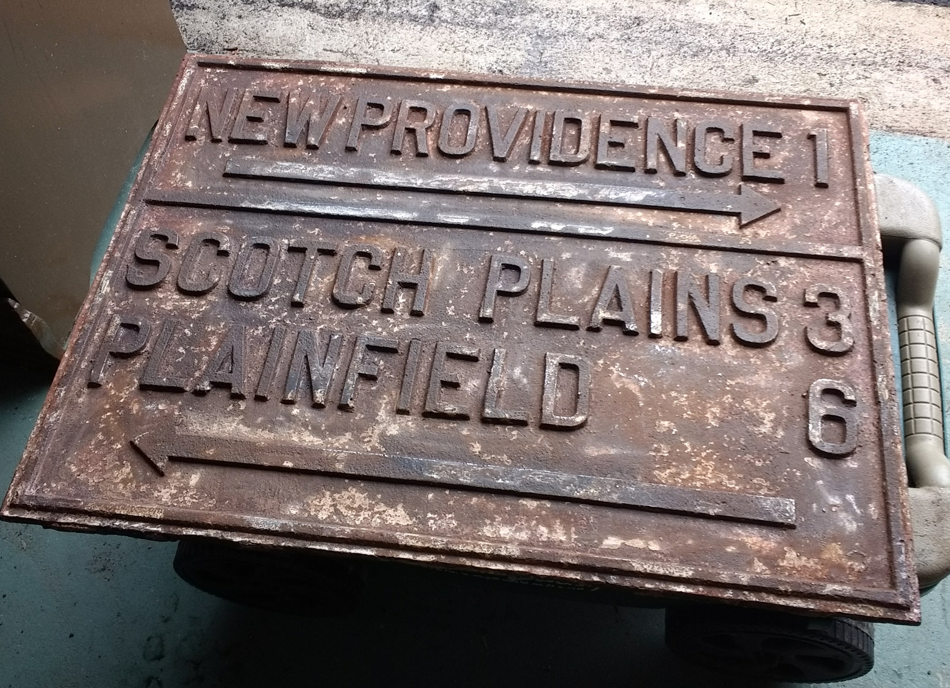 New Jersey’s once ubiquitous cast iron guidepost signs, made between the 1920s and 1950s, were an endangered species when I was a kid, but they still could be seen here and there. Now, only a handful are still maintained across the state. You can also still find a number of the original posts holding newer signs or simply left in place in random locations across the state if you keep your eyes open.