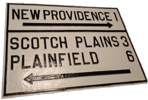 For years, I’d been on the lookout for one of these guideposts signs. In 2017, I finally found one – a sharp-cornered sign from Union County. It points to New Providence, which happens to be where I lived when my daughter was born, adding some extra sentimental value to an already cool sign.