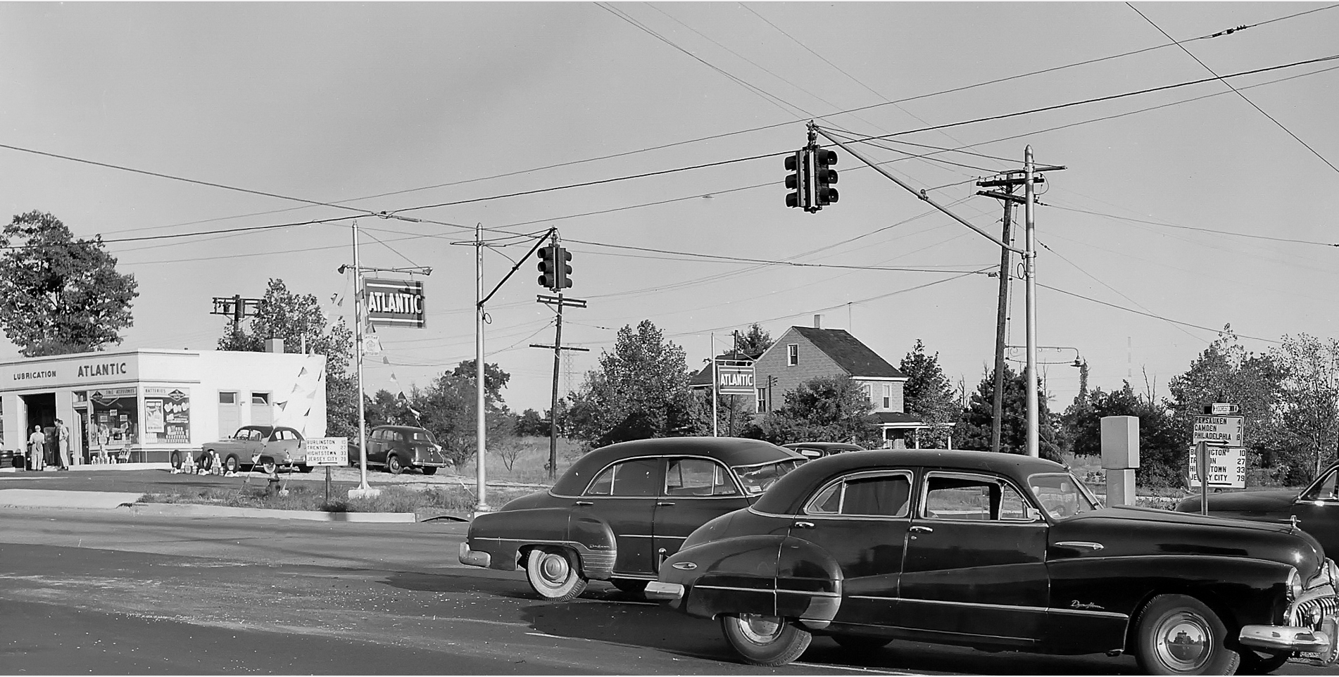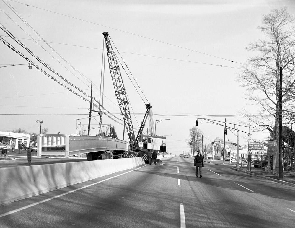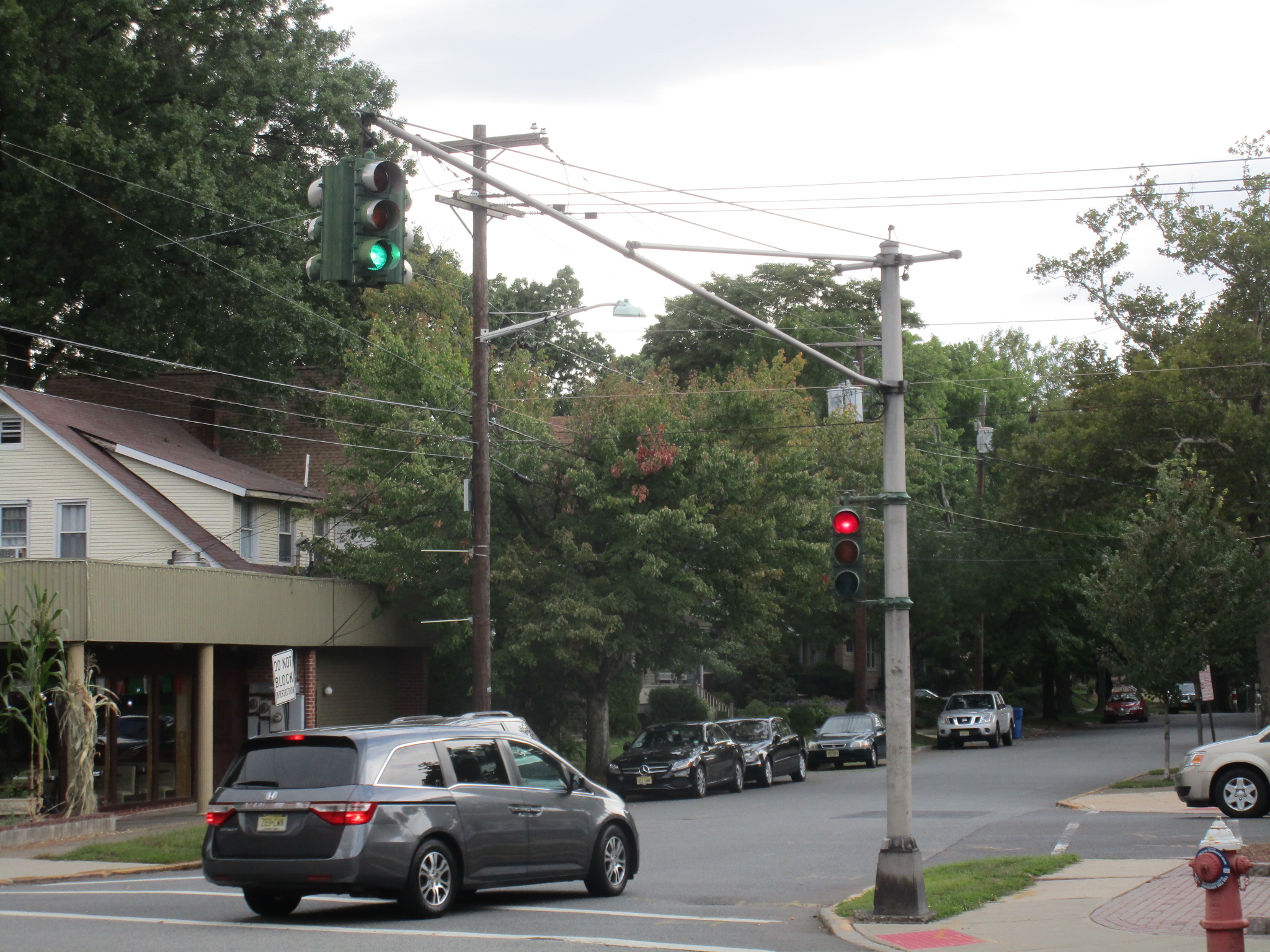 After World War II, aluminum again became abundantly available for civilian use, and therefore it became the main metal used for traffic control equipment across the country. This page documents the signals that were suspended by aluminum guy-wired mast arms, which sprang up in huge numbers in New Jersey in the late 1940s and early 1950s.