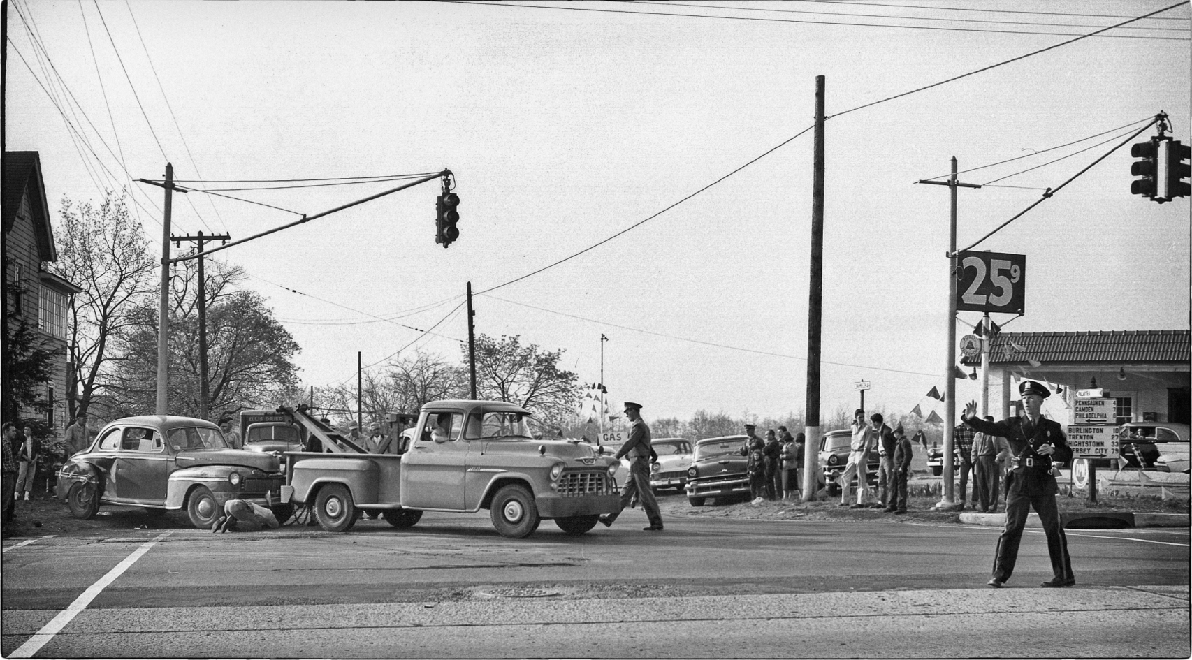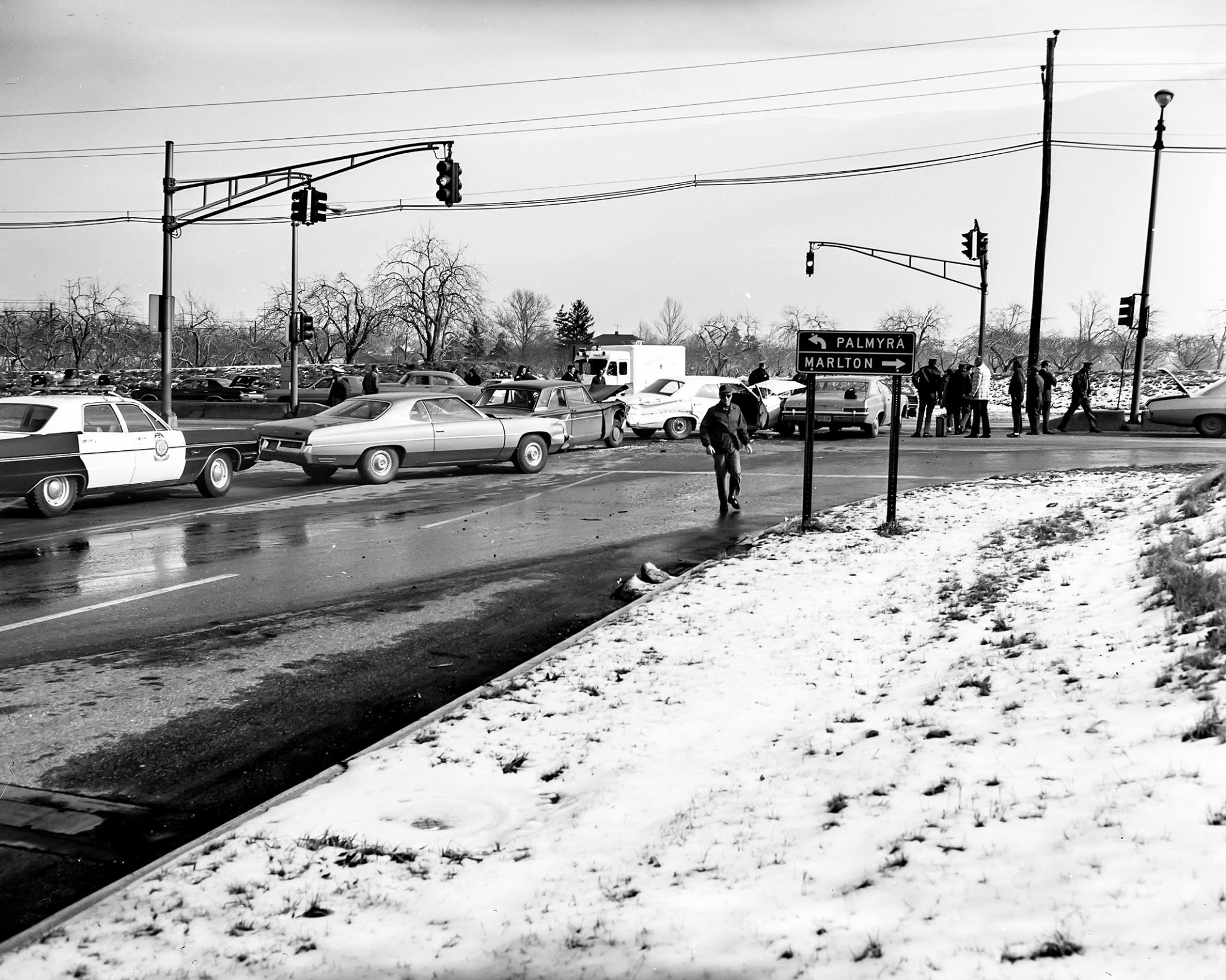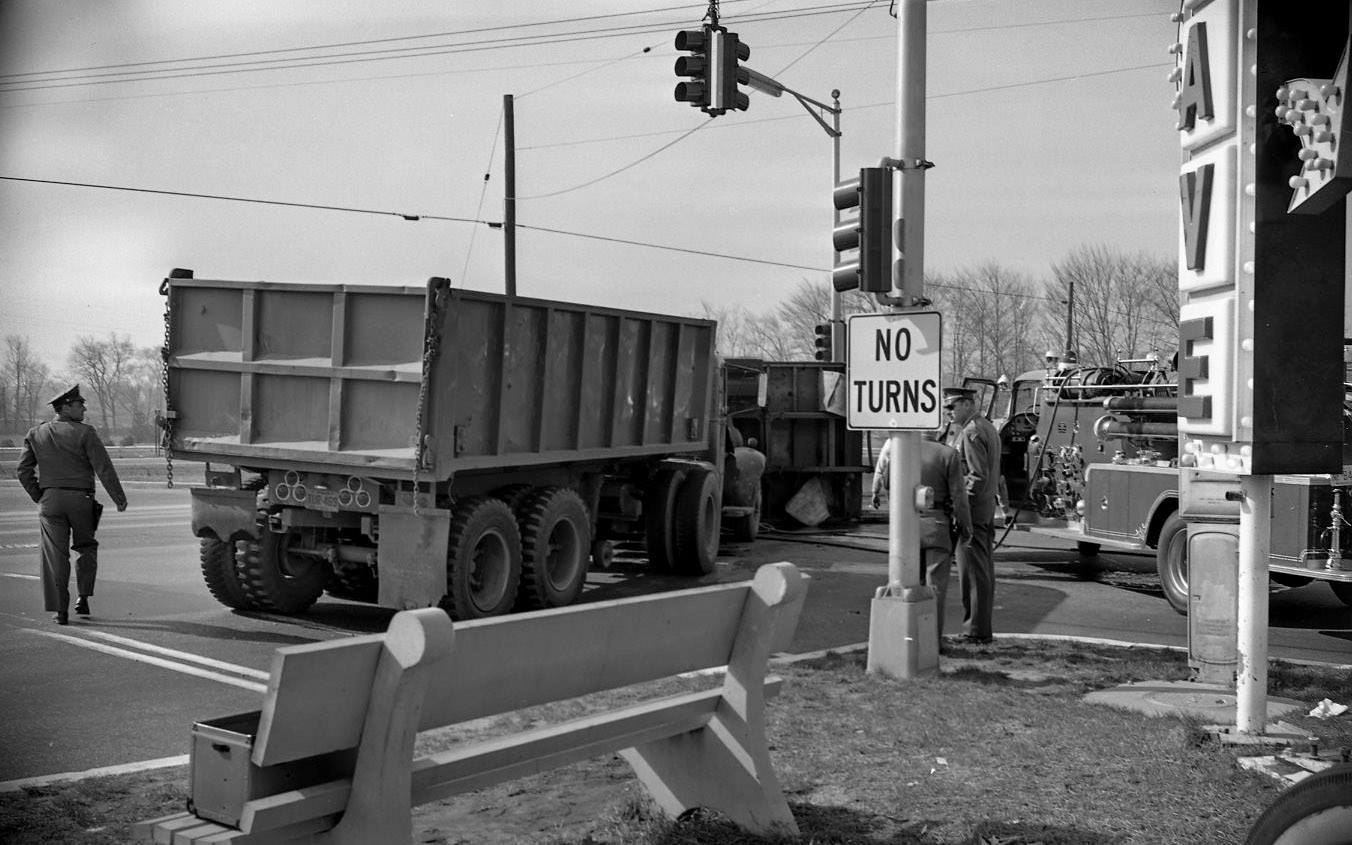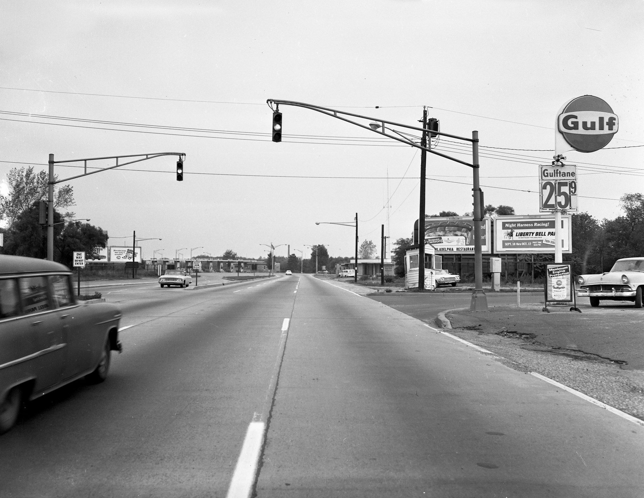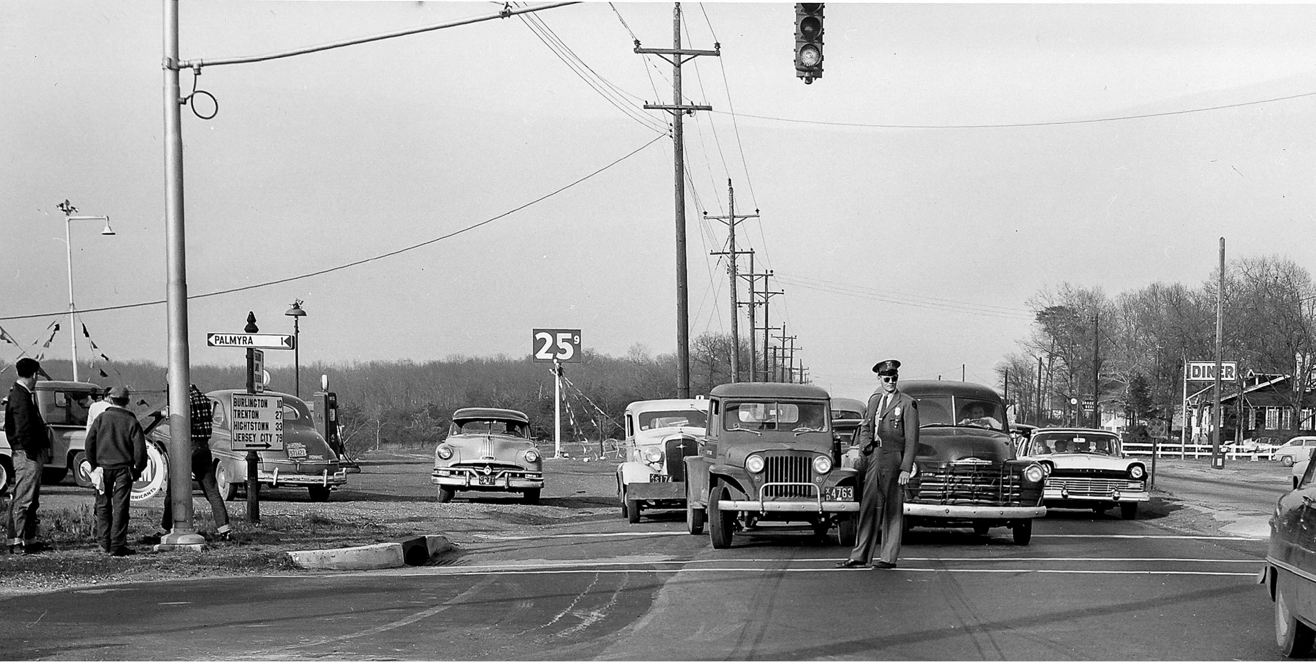 This set of Cinnaminson Police photographs spanning the 1950s into the ’70s was mostly taken along US Route 130. These signals remind me of what I typically saw in my childhood whenever we drove on the US or state highways. Since most of these photos show guy wire masts, I put the whole photo set on this page. Besides the old lights, I miss the rural feel that has been largely lost in many towns like Cinnaminson.