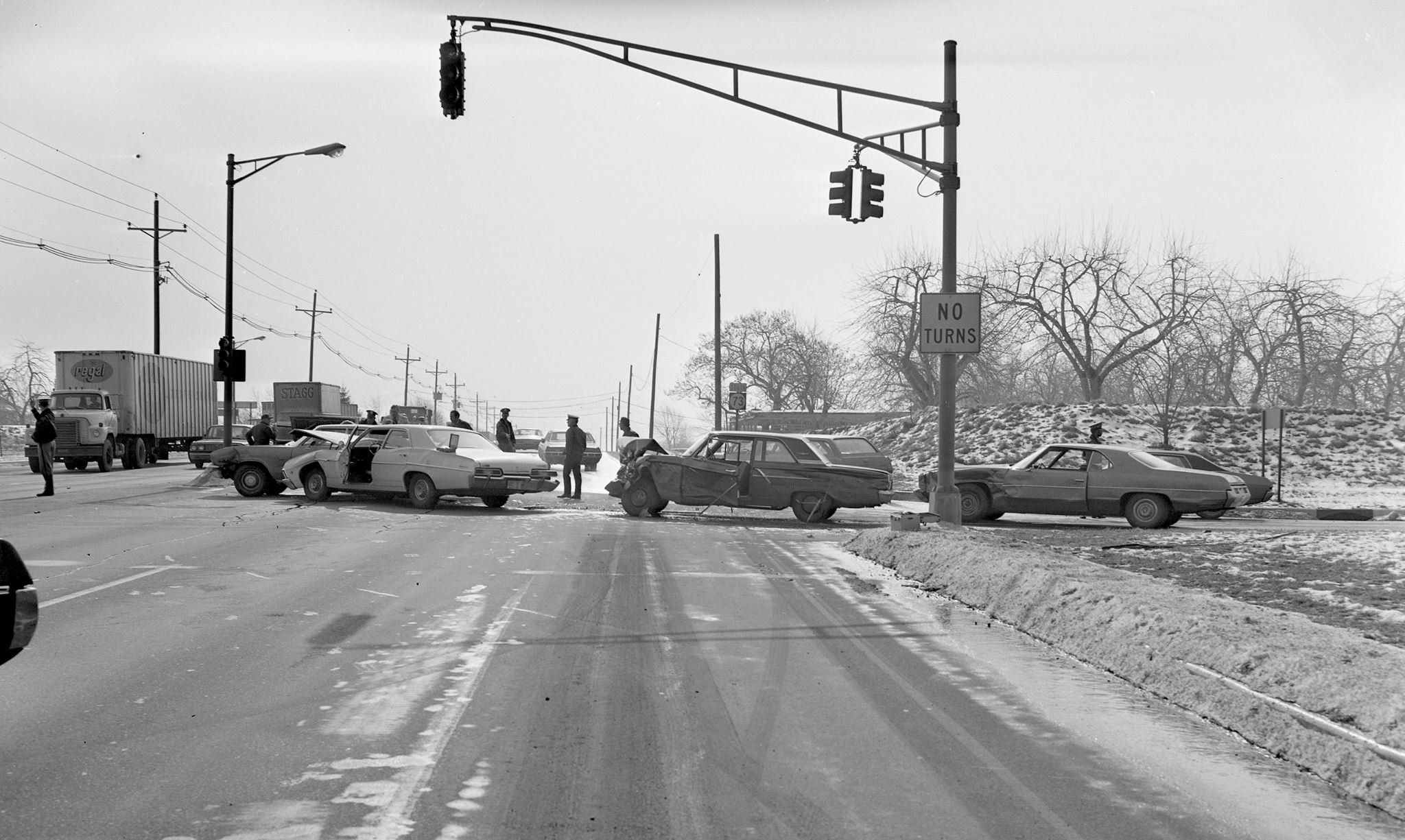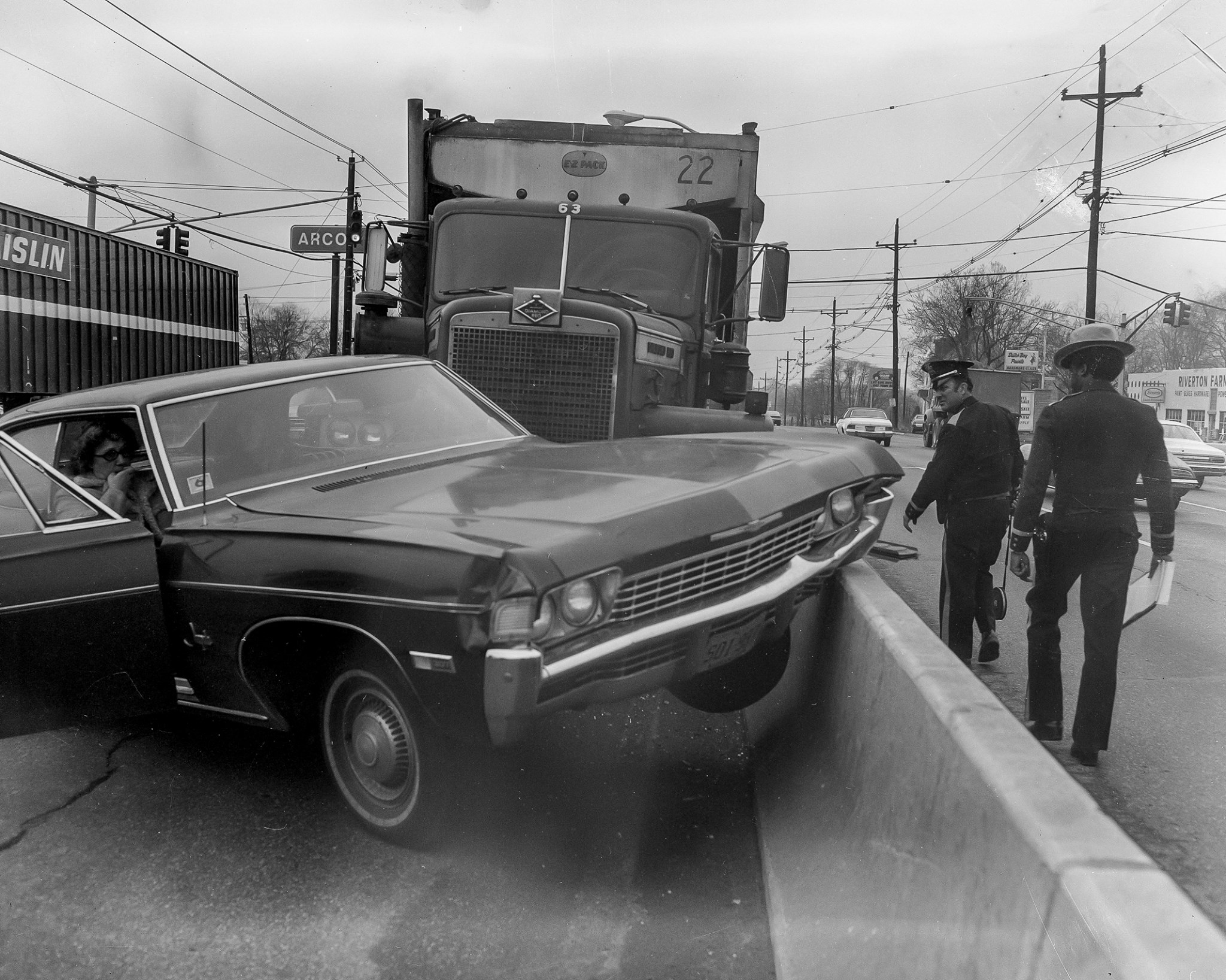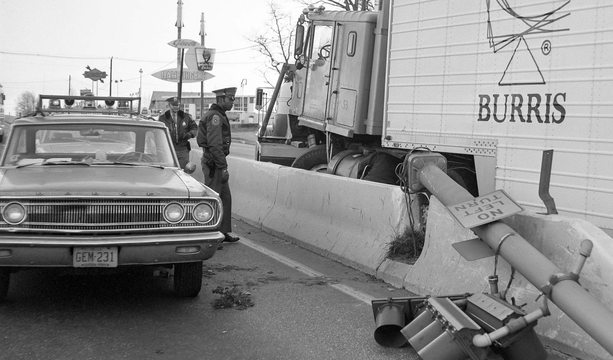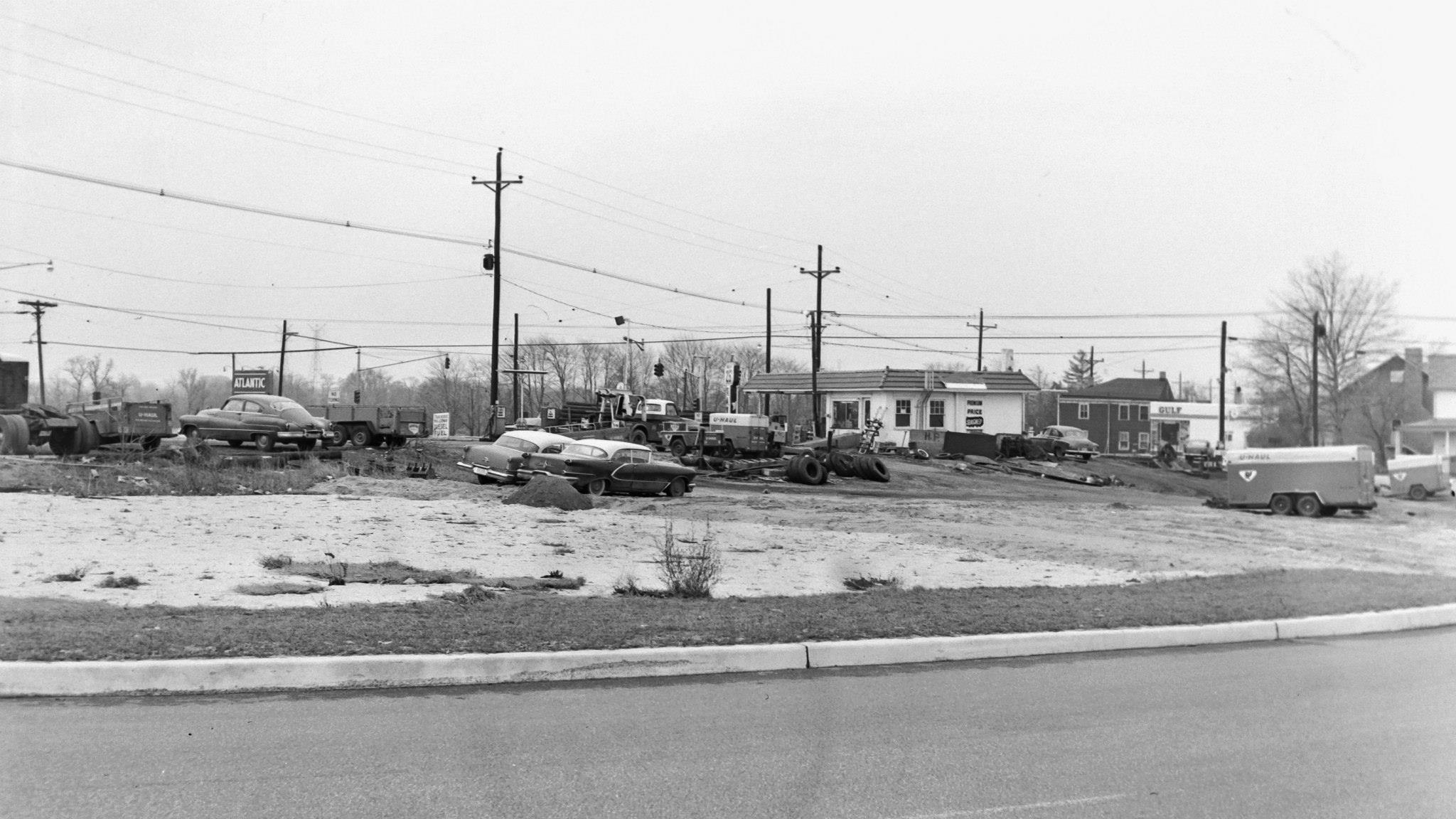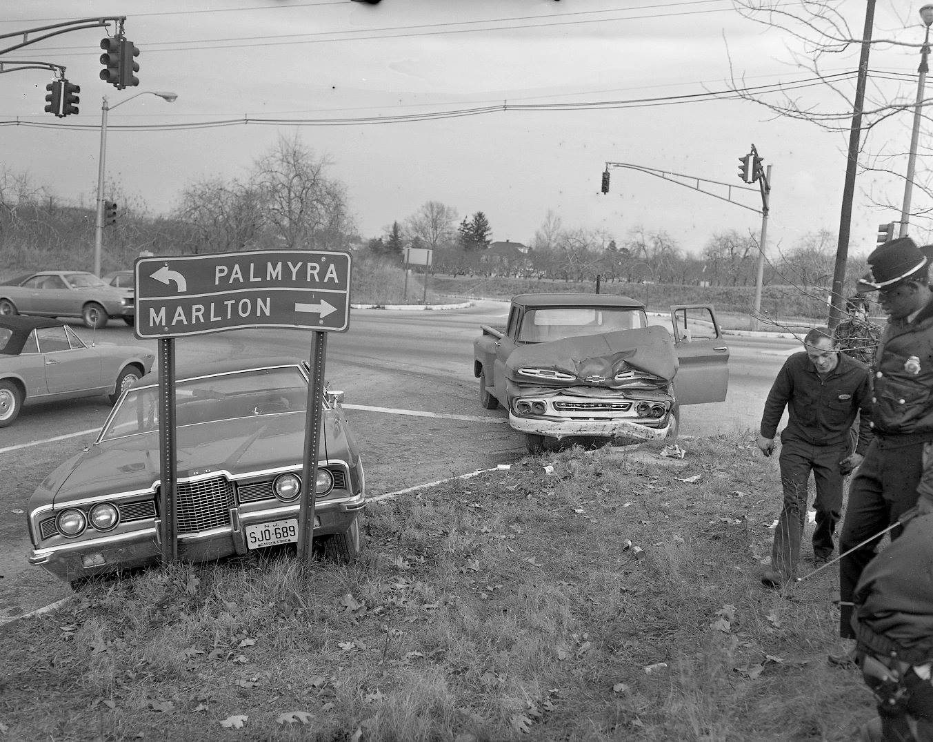 This set of Cinnaminson Police photographs spanning the 1950s into the ’70s was mostly taken along US Route 130. These signals remind me of what I typically saw in my childhood whenever we drove on the US or state highways. Since most of these photos show guy wire masts, I put the whole photo set on this page. Besides the old lights, I miss the rural feel that has been largely lost in many towns like Cinnaminson.