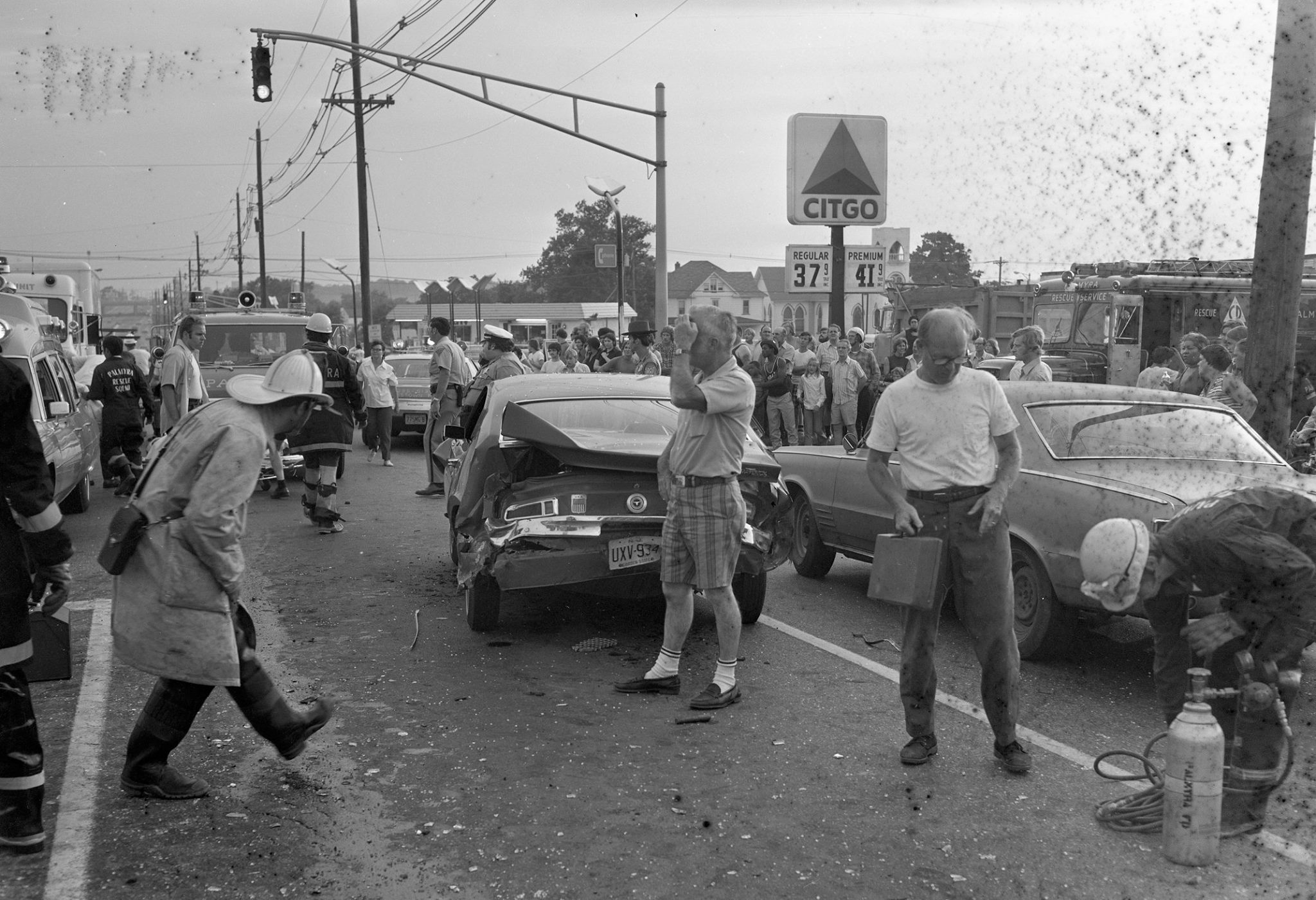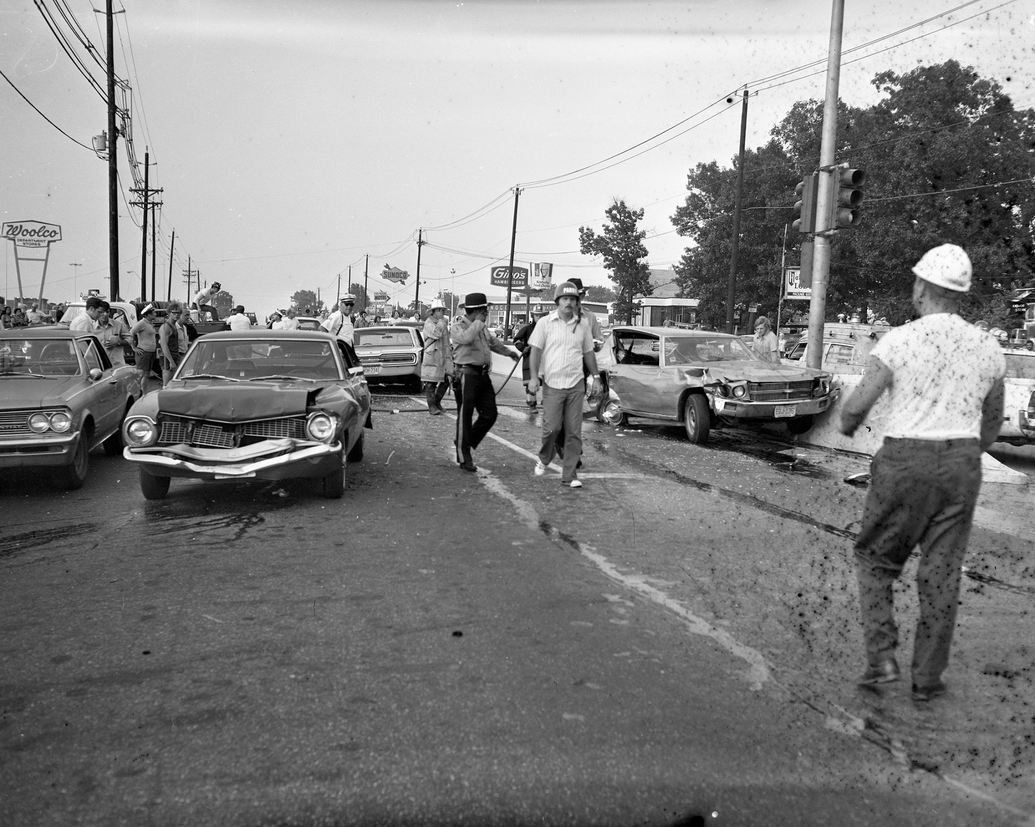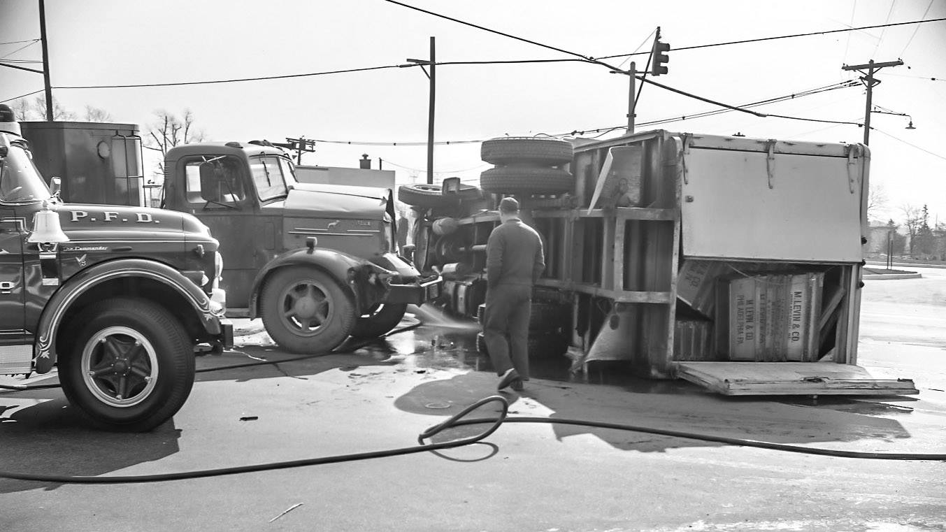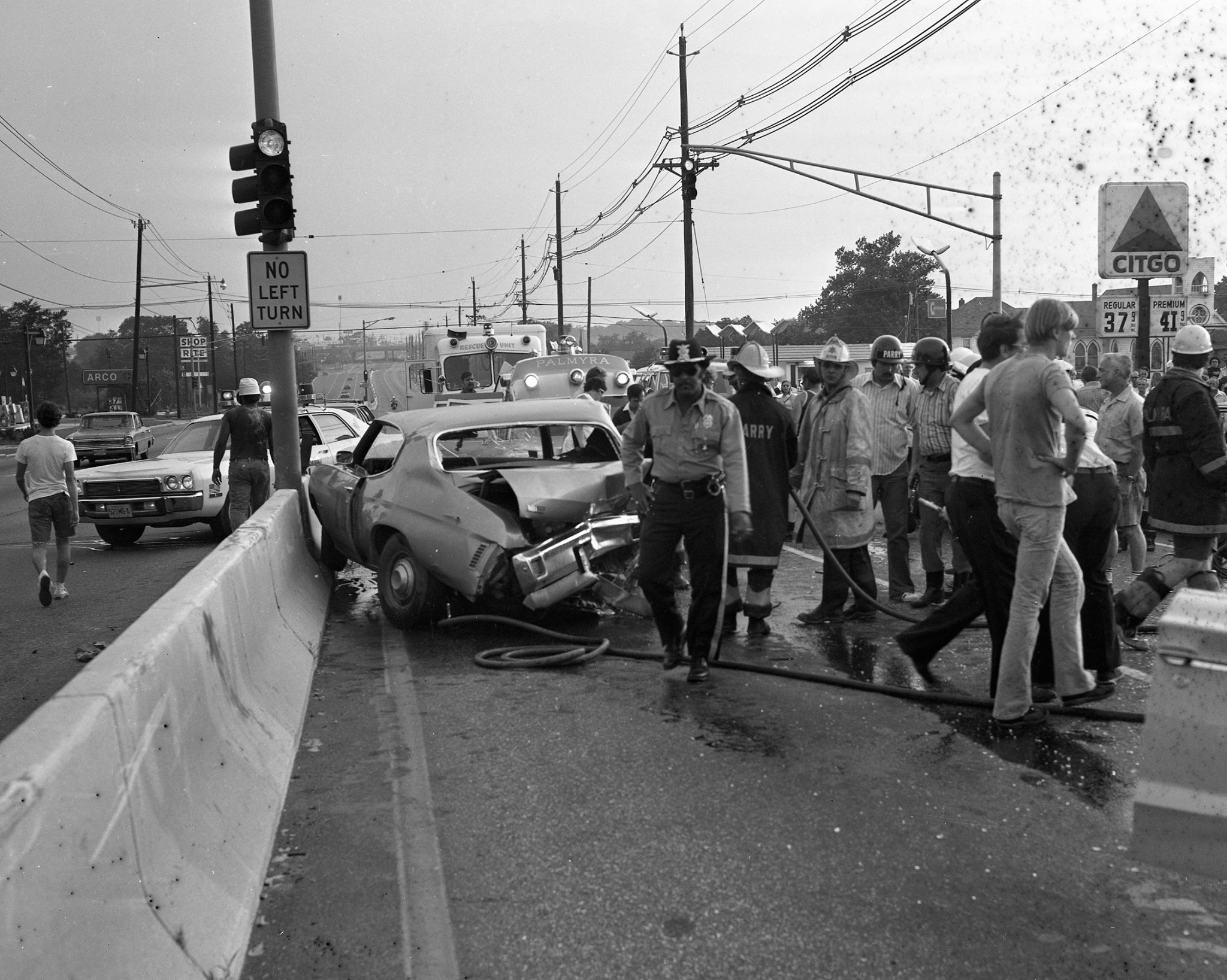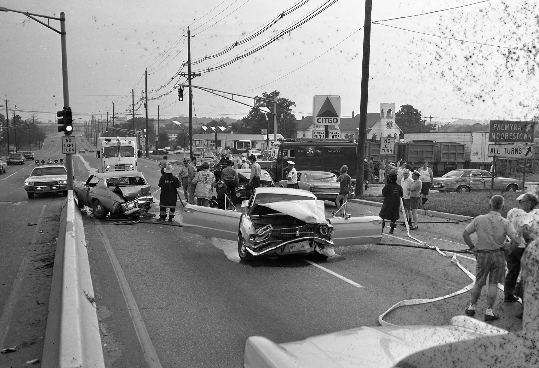 This set of Cinnaminson Police photographs spanning the 1950s into the ’70s was mostly taken along US Route 130. These signals remind me of what I typically saw in my childhood whenever we drove on the US or state highways. Since most of these photos show guy wire masts, I put the whole photo set on this page. Besides the old lights, I miss the rural feel that has been largely lost in many towns like Cinnaminson.