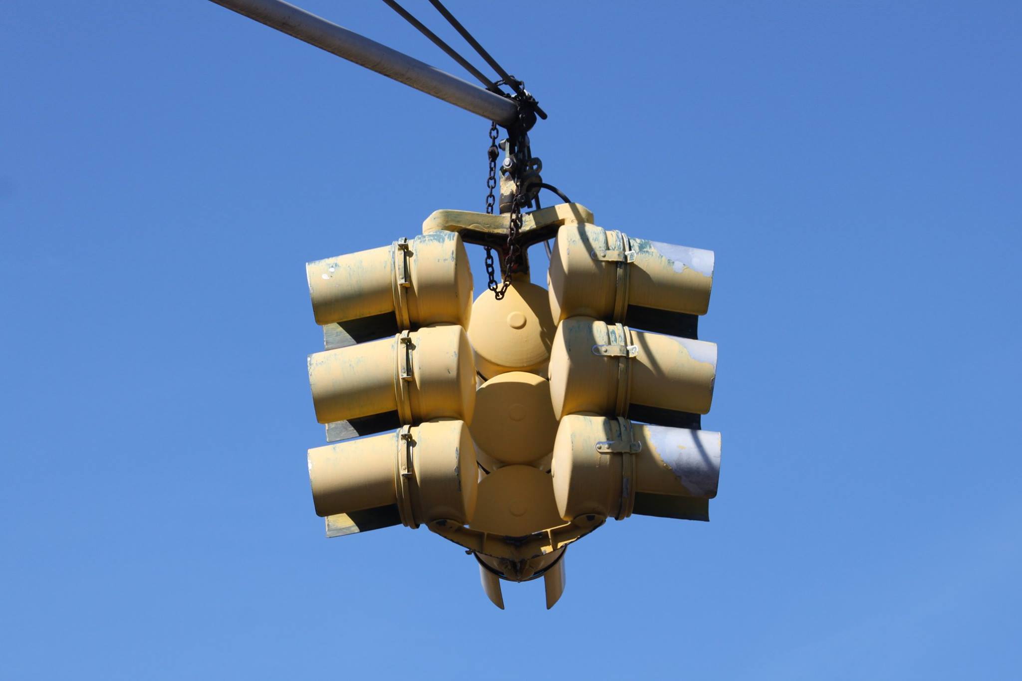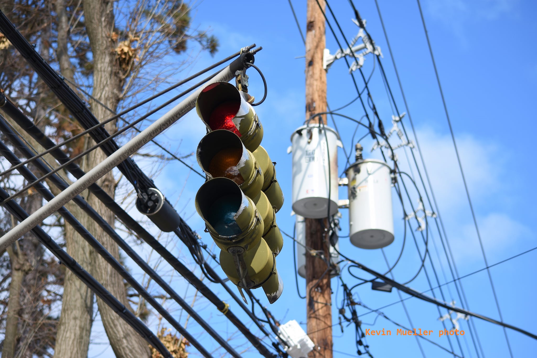 Steve Conboy captured the final days of this 1950s GE “Streamline” cluster on a guy-wired mast in North Bergen in 2017. Old, fully-functional aluminum 8″ signal being replaced by 12″ plastic signals is, sadly, inevitable. This website is all about the old stuff.