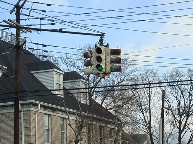 I remember these very fondly from my youth. They were all gone by the end of the ’80s. In the early ’70s, my parents owned a small grocery store in south Paterson, and the signals next to our store were set up in this style. My brother, our cousin and I would stand on the corner like baseball umpires, calling drivers Safe! or Out!, depending whether they ran a red light or not.
