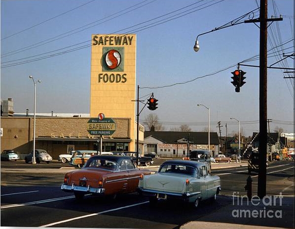 The city of Elizabeth was home to American Gas Accumulator and Signal Service Corp. The downtown views above are both circa 1950. The black and white photo shows an AGA with the pre-1931 circular doors and a NO TURNS box sign. The Kodachrome photo shows a beautiful 3-way cluster in silver.