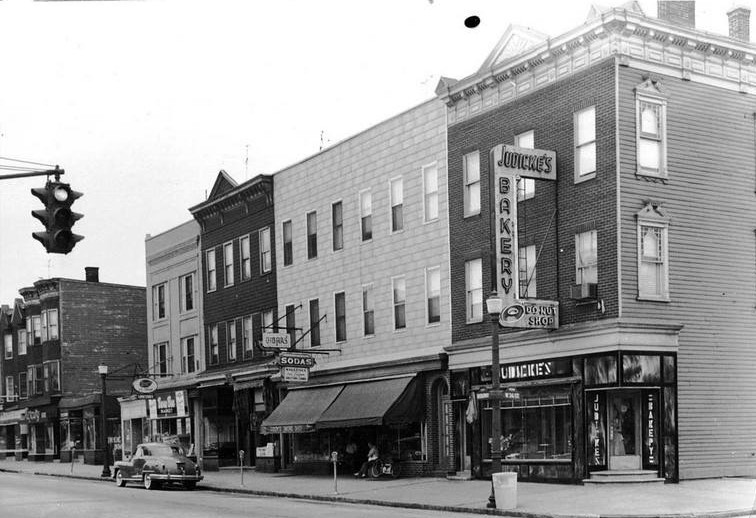 Union City and other neighboring towns in Hudson County are like a place that signal time forgot. Unfortunately, time eventually caught up with this lone Horni/Marbelite cluster from the 1930s or 40s. But it stood valiantly at the corner of 47th and New York Ave until sometime soon after the 2007 Google image above on the right. The image on the left was probably taken around 1960 from a slightly more distant vantage point.