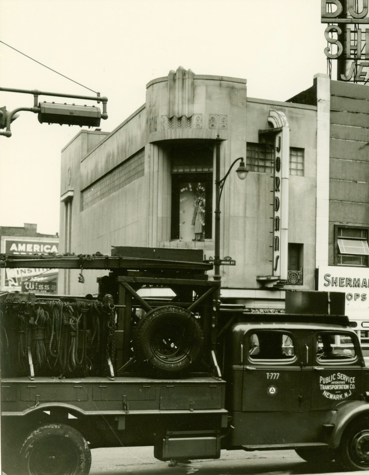 Newark favored GE signals for many years. This 1950 photo shows an early 1930s GE Novalux setup on short horizontal guy-wired masts. Click the image for the full size, or click here for a cropped detail.