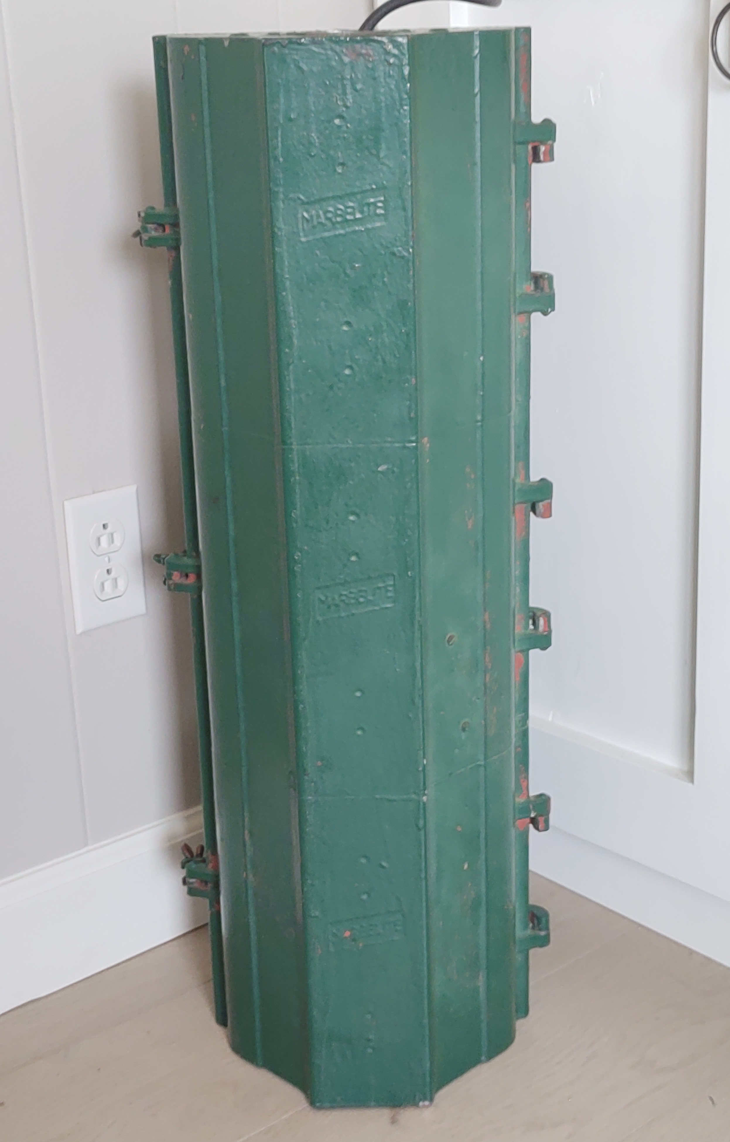 The faded signal is the Marbelite that the Hoboken Historical Museum gifted me with for helping install a 1930s Horni signal in the museum. Made soon after Marbelite took over Horni in 1947, this Marbelite served in Hoboken from the late 1940s until 2018. It was located at the corner of Washington & 5th when it was removed. I put (Houzex) Marbelite #6540 lenses in it, and I put the original Kopp #66 lenses in another signal. The visors are cut straight, which was the earlier convention.