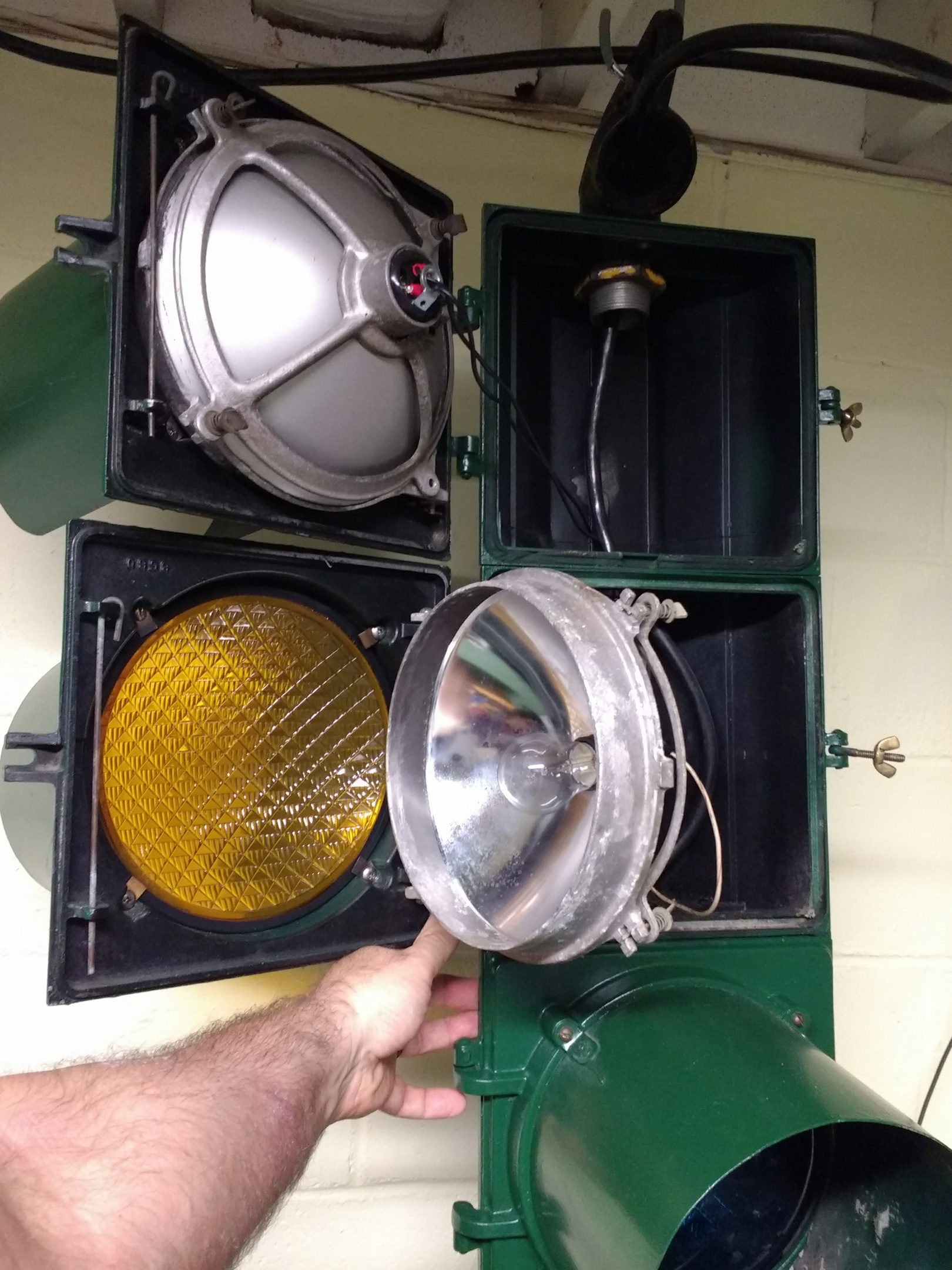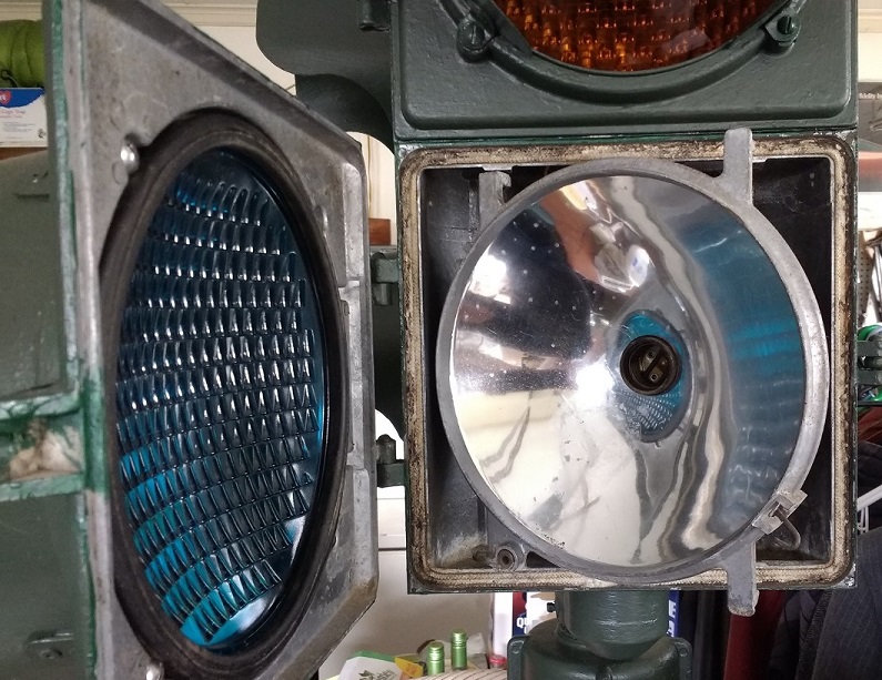 The LPS-20 was the mainstay of New York City for a good 10+ years, although it had some flaws. The reflectors, were made of plastic which became brittle and often broke and then could melt or even ignite from contact with the light bulbs. Most collectors who find an LPS-20 need to find replacement reflectors, and thankfully, collector Steve Tutty from Colorado made sturdy sheet metal reflectors to order – which I put into the signal pictured here.