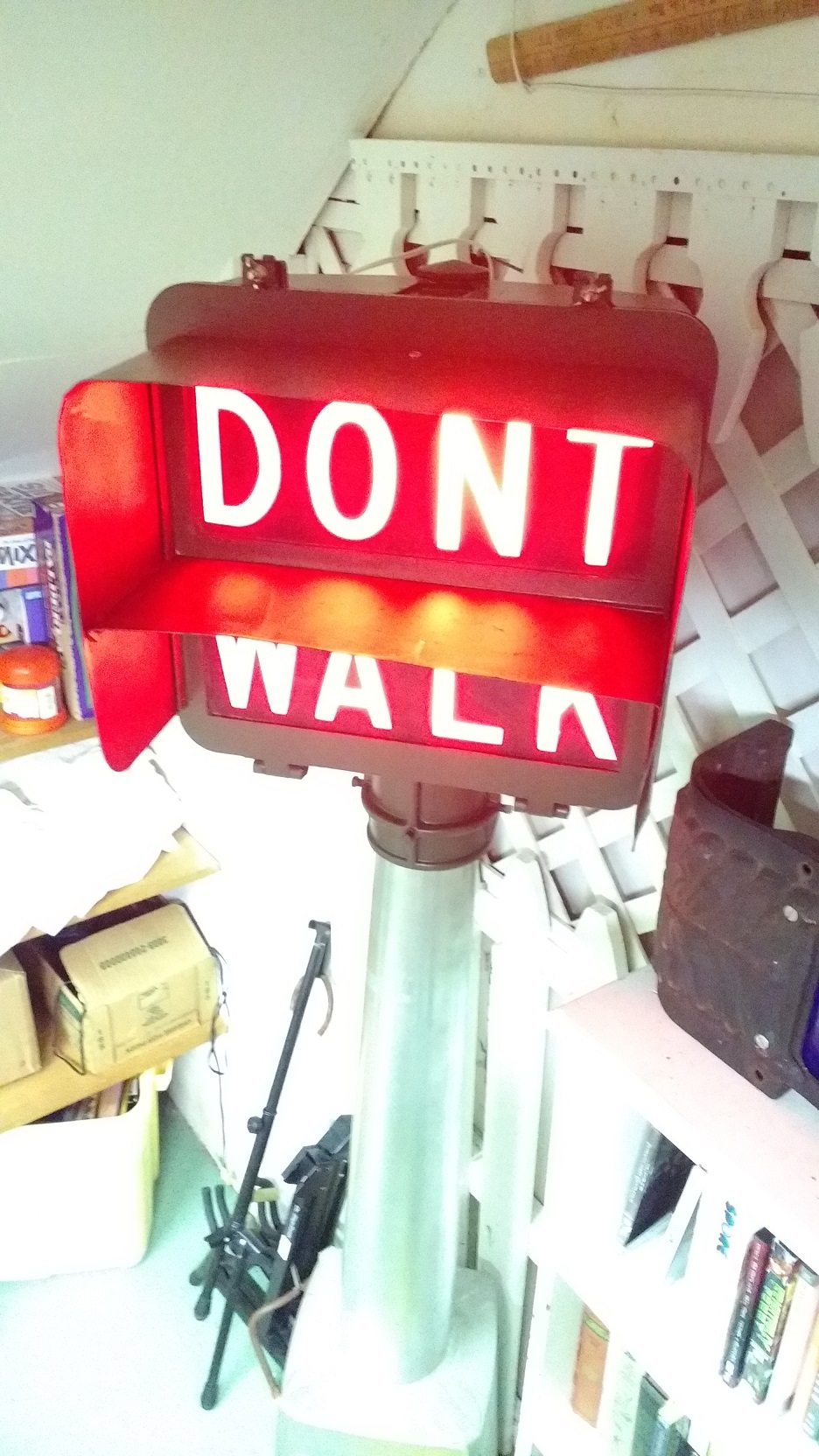 Around 1975, Marbelite updated their 16″ pedestrian signal to the MPS-20 model. The LPS-20 used only two bulbs, with metal reflectors, behind a colored DONT WALK | WALK lens.