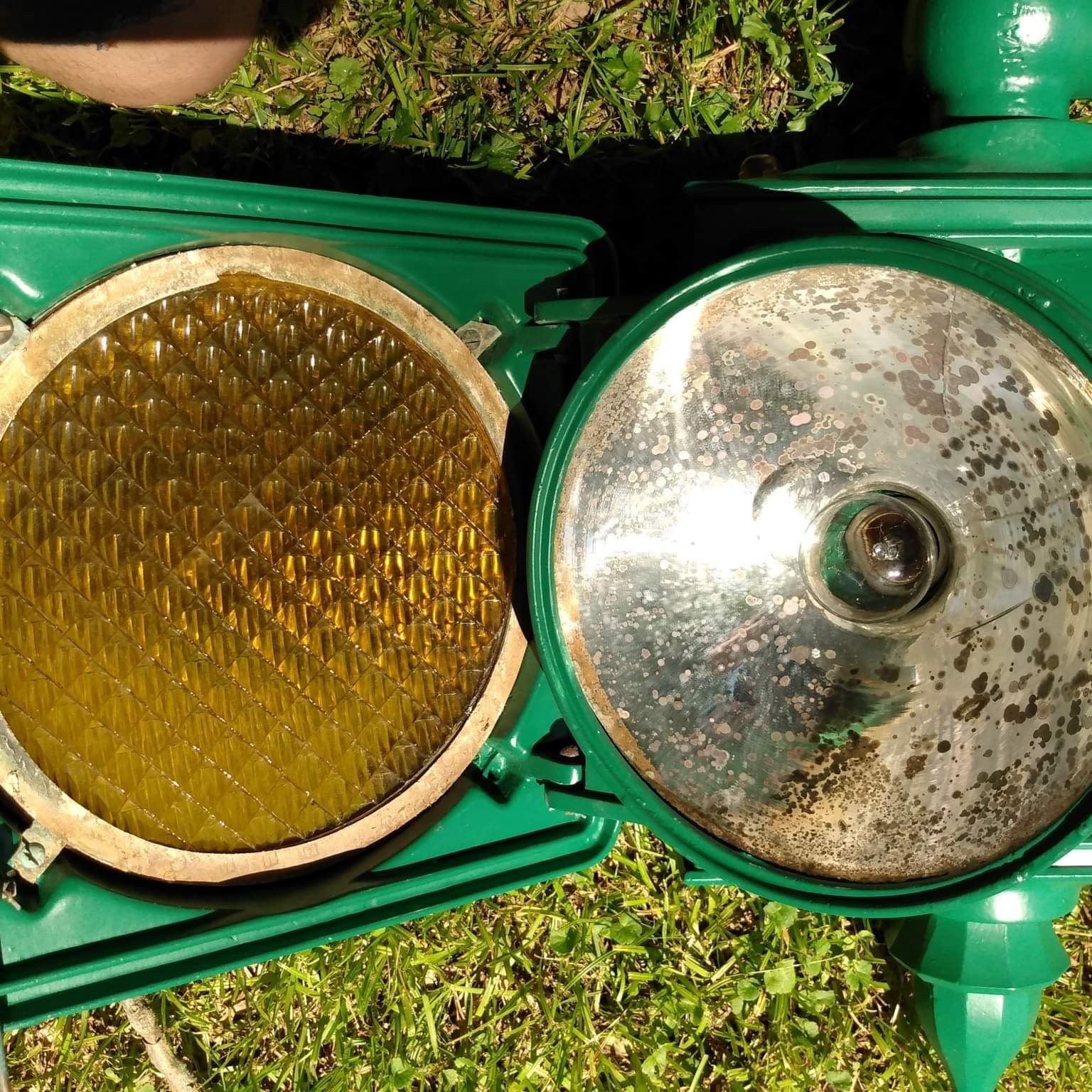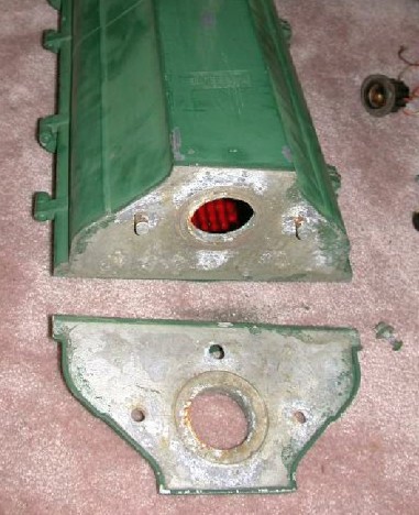 In or around 1948, Marbelite introduced the “phantomless” optical unit to reduce the reflection of ambient light from the signal. This was accomplished with shallower reflectors. The glass is also thinner than in the previous generation. From this point forward, the size of the actual reflector bowls remained unchanged, so if you have one of these “Phantomless” lights in need of reflectors, you should be able to find replacements (either glass or aluminum) fairly easily. It’s not so easy for the older models…