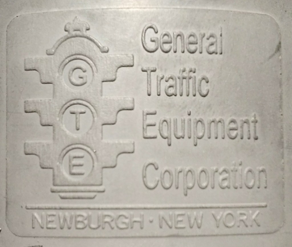 In the late 1990s, General Traffic Equipment (GTE) of Newburgh, NY acquired and used the late-gen Marbelite 8″ signal casting molds – as well as other Marbelite castings for parts such as cabinets, slip-fitters and connectors. The housings were practically unchanged from Marbelite, except that the Marbelite logo was replaced by the GTE logo. The doors were still embossed MARBELITE on the inside. A representative of GTE told collector Steven Gembara that they stopped using these molds around 2014.