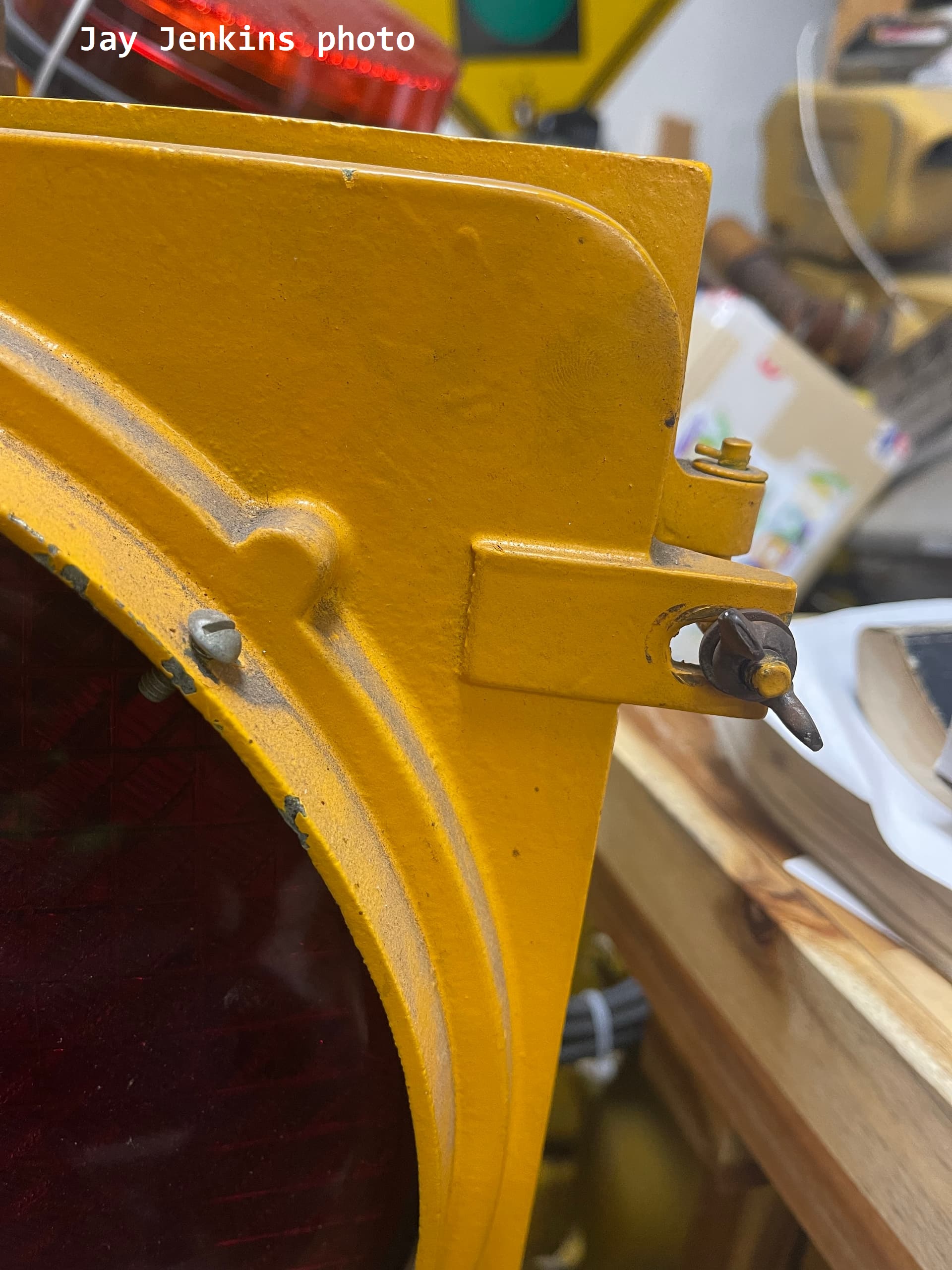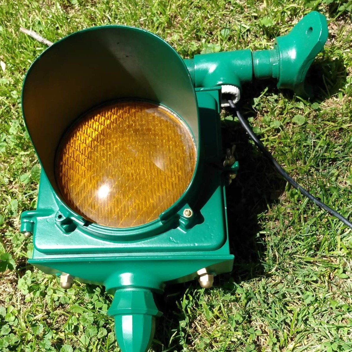 So far, I have only know of two of these signals having made it into anyone’s collection. In both cases, the lights were equipped with Kopp #27 diamond-pattern lenses. Thanks goes to Ohio collector Gerrit Carstensen for sharing the above photos of his single-section light.