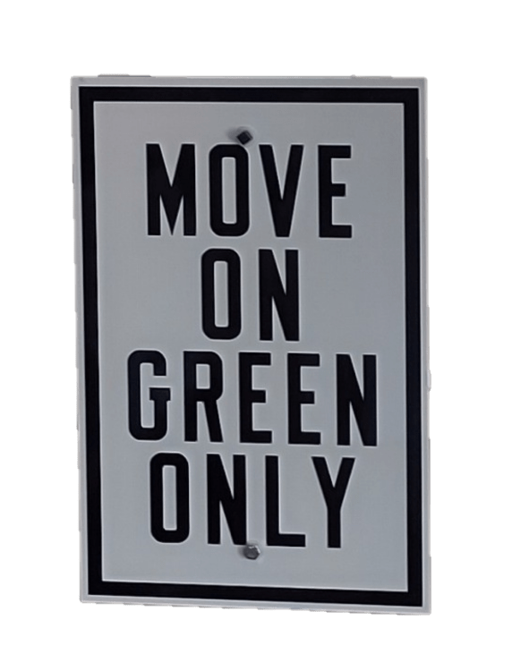 Repro 12 x 18 MOVE ON GREEN ONLY sign made by Signs by Jake. I have only seen them in a couple old photographs, like this one, in Hudson County New Jersey. These are a bit of a mystery; one collector I know theorized that they were the precursor to NO TURN ON RED.
