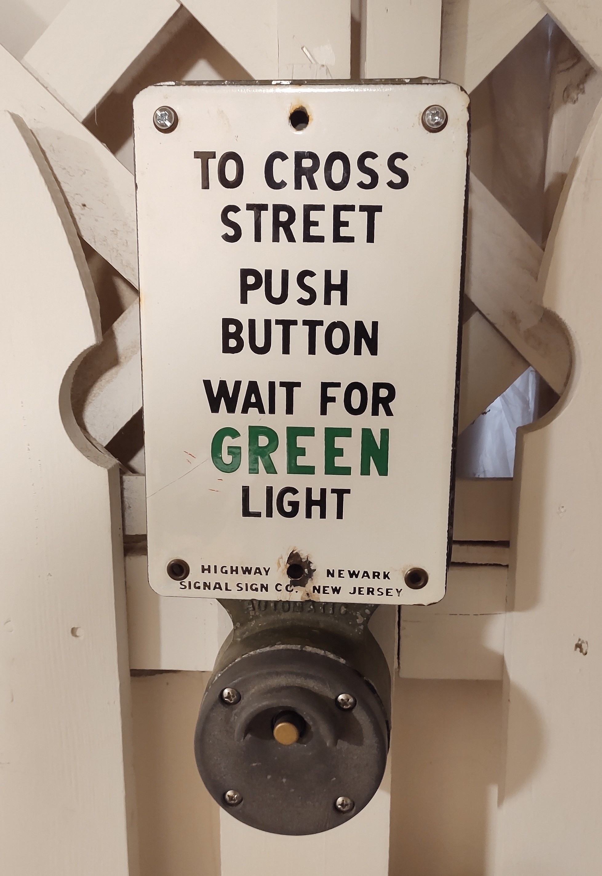 Mounted on an Automatic Signal push button (sourced separately), this sign most likely served in NJ or Philadelphia.