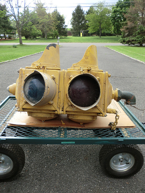 Patrick Gorman, a fellow signal aficionado who knew me through my old NJ Signals website, gave me a 4-way Ruleta signal sometime in or around 2004. Patrick, originally from New Jersey, worked for the government on a remote tropical island. Unable to practically collect signals for himself, he won an eBay auction for the Ruleta and graciously had it shipped to me as an unexpected gift! One of my bigger regrets in the hobby was to try to restore that light myself, ultimately despairing of the project and selling it as a pile of parts (with a lot of broken bolts…before I learned to use heat) to another collector who restored it beautifully. All photos I had of this light were lost with a failed hard drive before the days of cloud storage