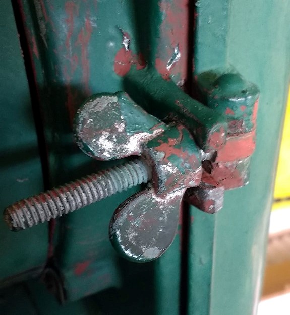 After more than 70 years of outdoor service, this signal still had all of its original parts, except for the sockets: The Kopp #66 lenses, the door-mounted glass reflectors, the 7″ tunnel visors, and the big brass wing nuts were all in good shape. The replacement sockets that I found inside worked OK, but did not fit well, so I replaced them with 3D-printed reproduction sockets made by members of the Highway Divides forum. Ed Tapanes extracted one broken visor screw and re-tapped the hole – Thanks for the hands-on tutorial, Ed!