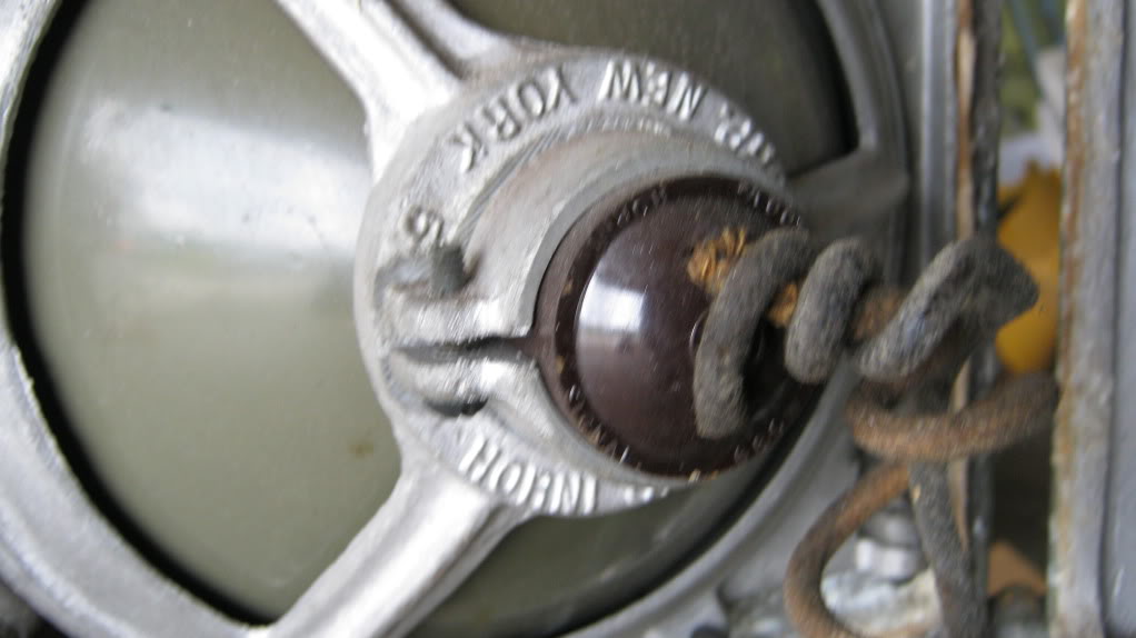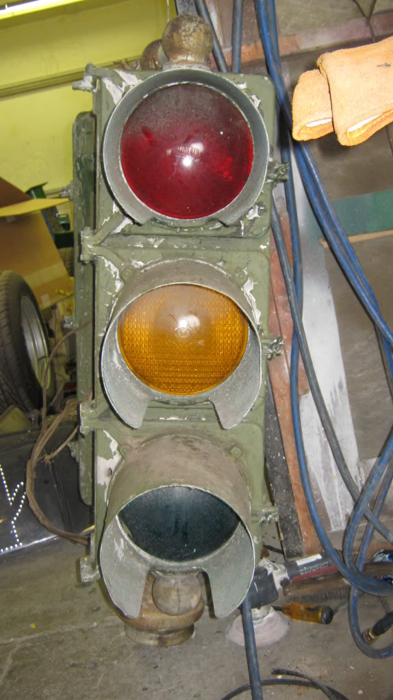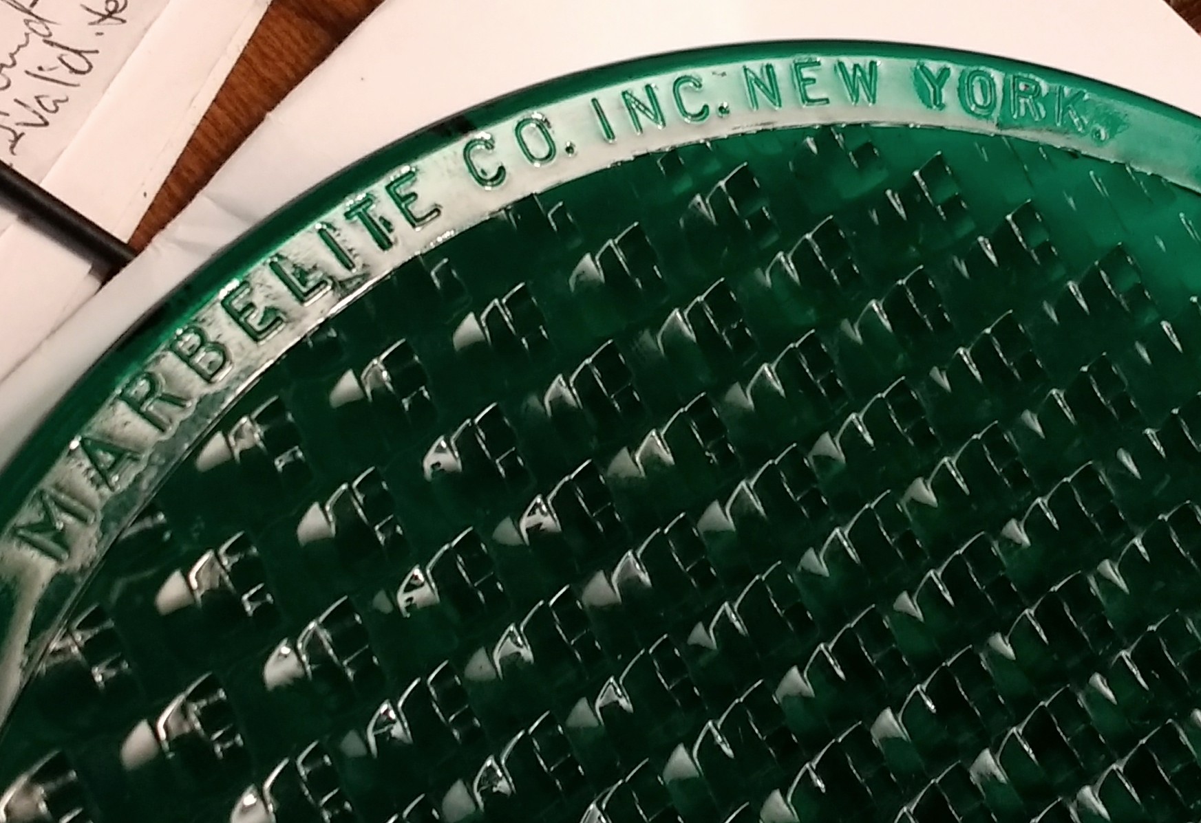 The photos above show Marbelite signals from the late 1940s. The blank doors with the “X” are a rare bird indeed. I have only seen one other signal, in the town of Rye, NY, with these blanks. The short, horizontal cutaway visors and the stubby finial are typical of the older Horni signals that Marbelite inherited in 1947. The cracked “emerald green” lens seen in the last photo is a rare Marbelite No. 6540 lens.