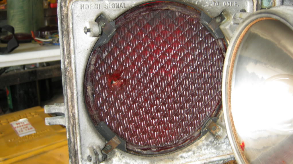 Here’s a truly amazing collecting score. Ohio collector Jay Jenkins acquired a pair of Horni corner-hinged signals with cast tunnel visors and full mounting hardware, like those seen in the black and white photo from Newark (below). His signals came from New Jersey, perhaps Newark, and it is the only survivor like it that I know of.