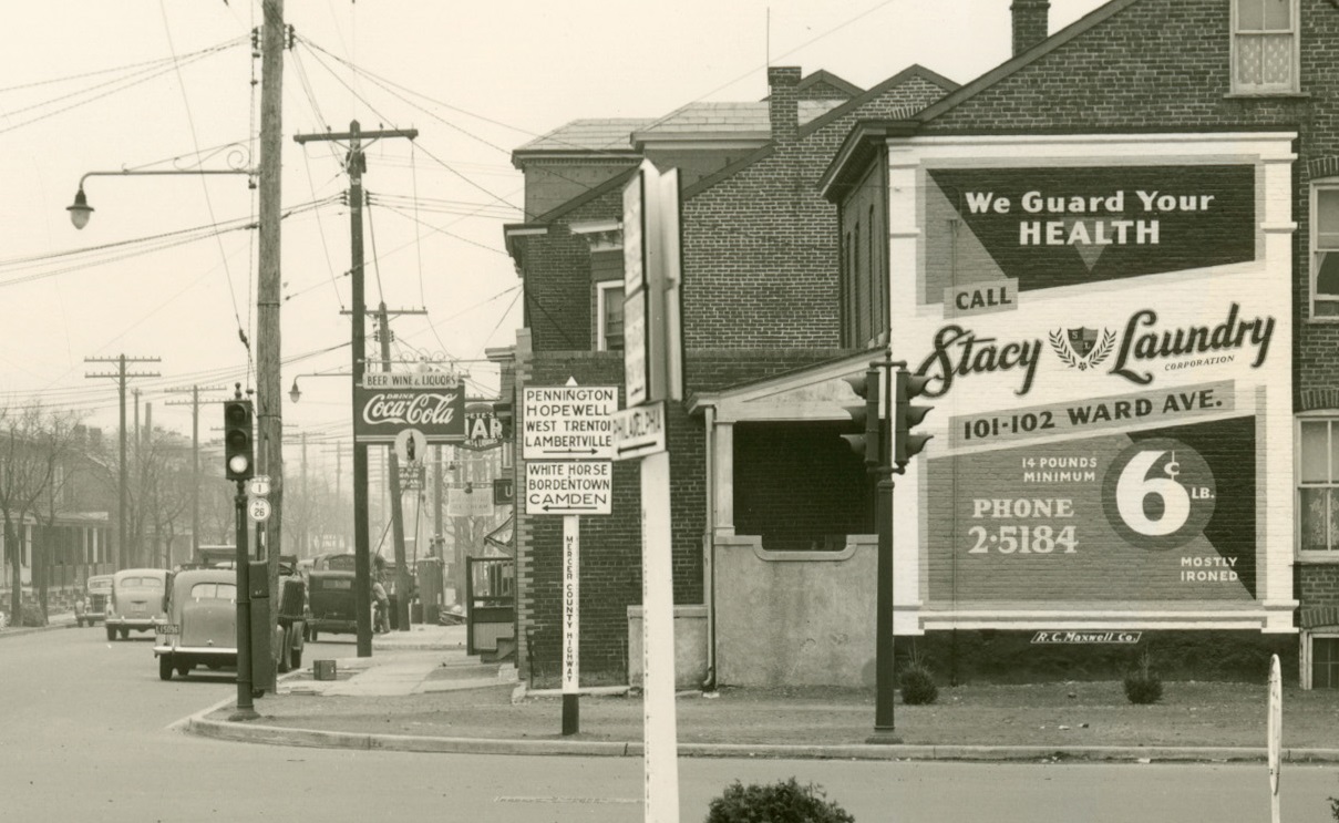 The mosaic above is from Trenton intersections in the 1930s-40s. Various generations of signals by Crouse-Hinds, AGA/SSC and GE. Lots of other lovely treats are contained therein, including streetlamps, fire alarm boxes, business signs and murals and guide and route signs. All photos from the RC Maxwell collection.
