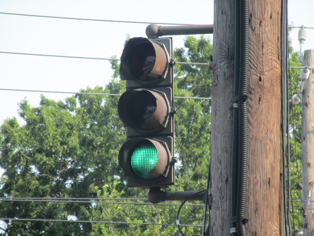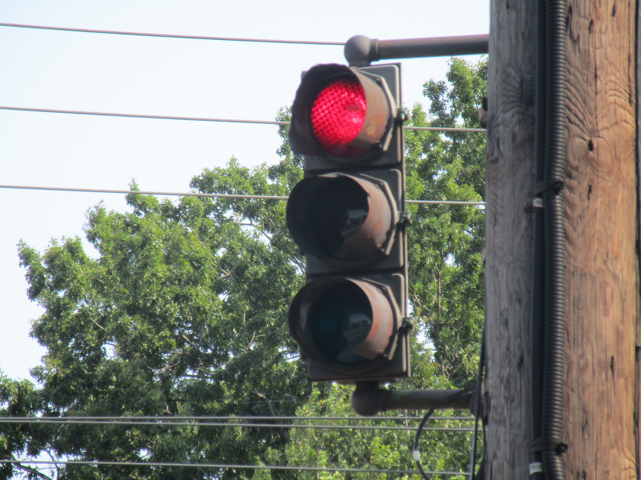 The signal facing Vauxhall had the original red and emerald green Horni-Kopp #27 lenses. The other head was wrapped in plastic due to the reversal of the one-way direction of Glenn Ave. Incredibly, the operational signal was converted to LED, and both survived on the pole until late 2015. Heaven knows, I tried to get a hold of these by contacting Union Township and Union County several times, but to no avail. These were likely the last solid-cast Hornis left in New Jersey.
