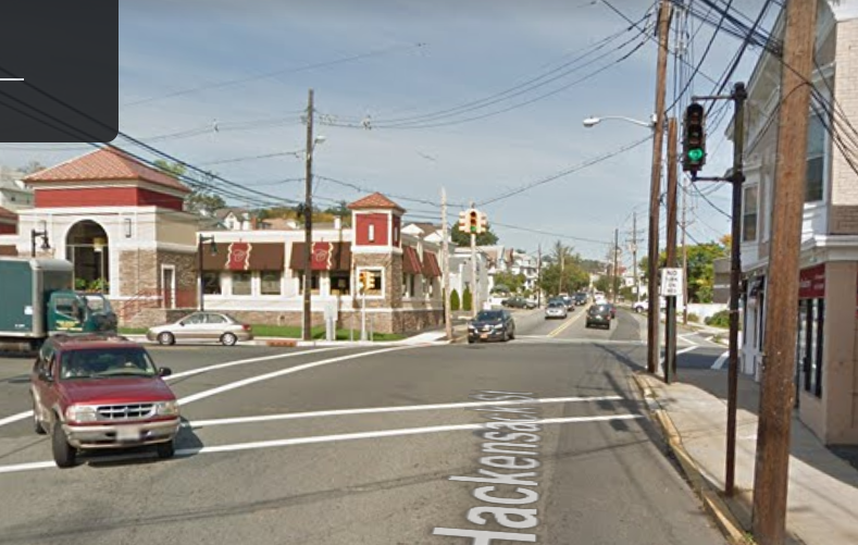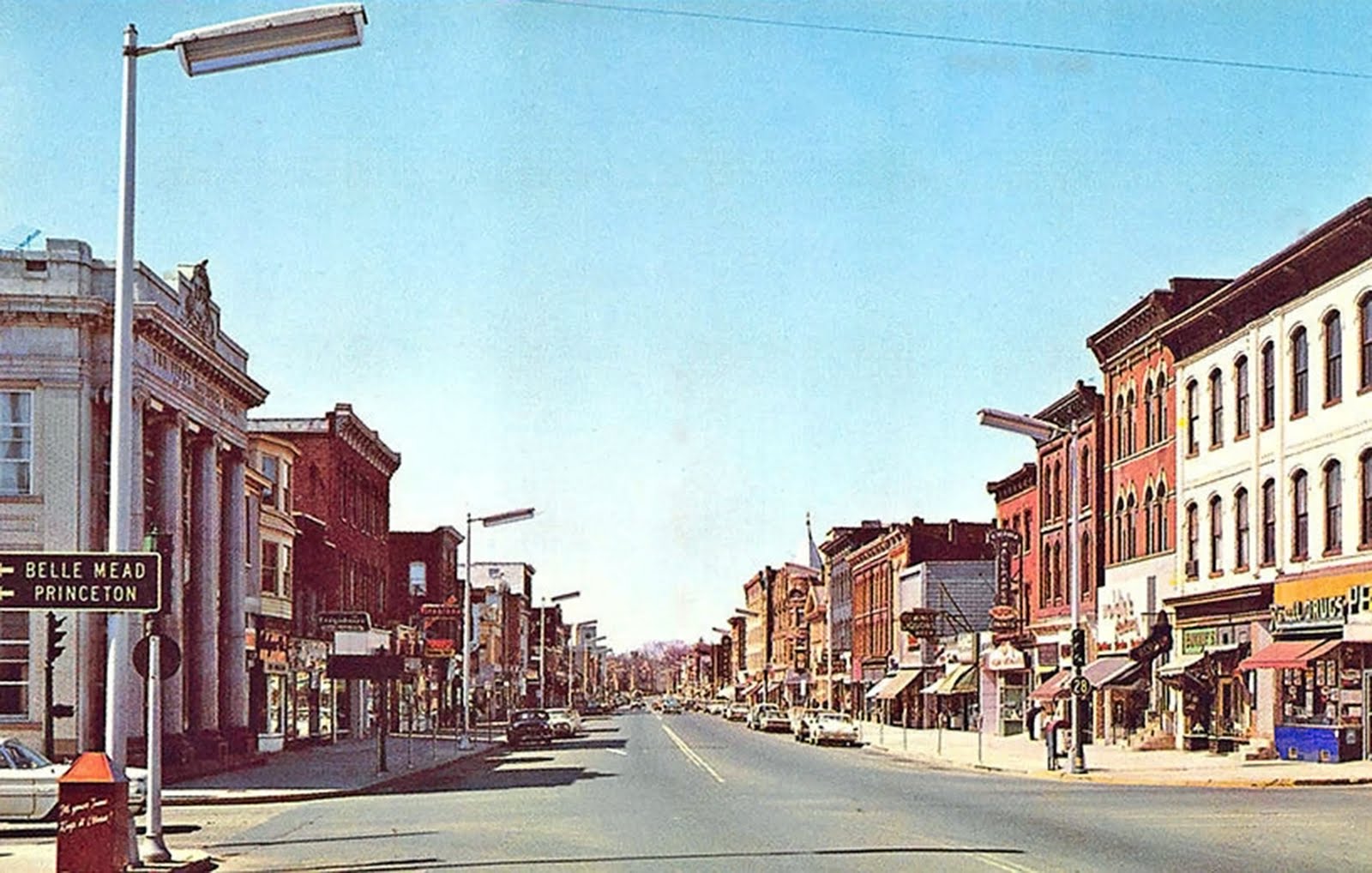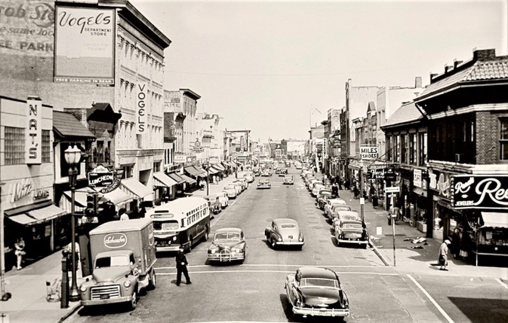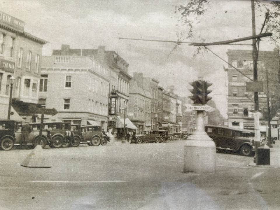 A single cluster of bracket-mounted Horni signals control a major Broadway intersection in Long Branch.