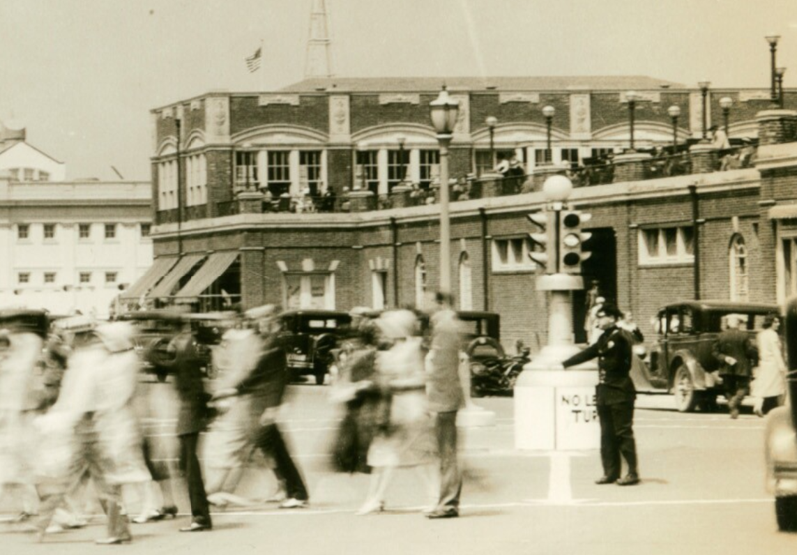 Based on the photos I have seen from the RC Maxwell collection, these signals were removed sometime before 1945, and were not immediately replaced. It must have been difficult having no traffic signals on Ocean Avenue, and by 1949, it was re-designated as a one-way street, thus creating what was known locally as “The Circuit”. However, even with this traffic pattern, the steady increase in volume meant that traffic lights would ultimately return to Ocean Avenue.