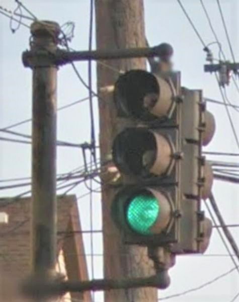 Right: This is the southbound perspective of the ferry entrance. This view confirms that the intersection was controlled by a single Crouse-Hinds Type T head per approach.