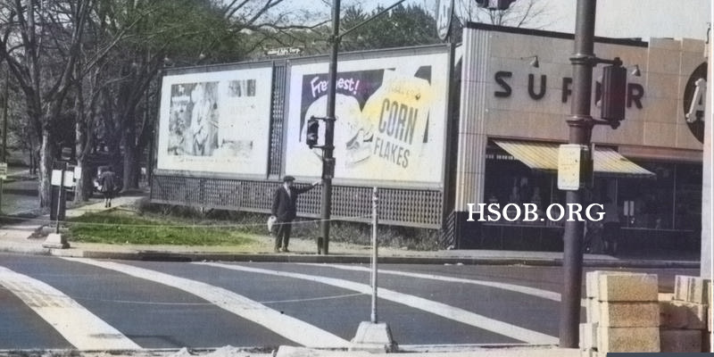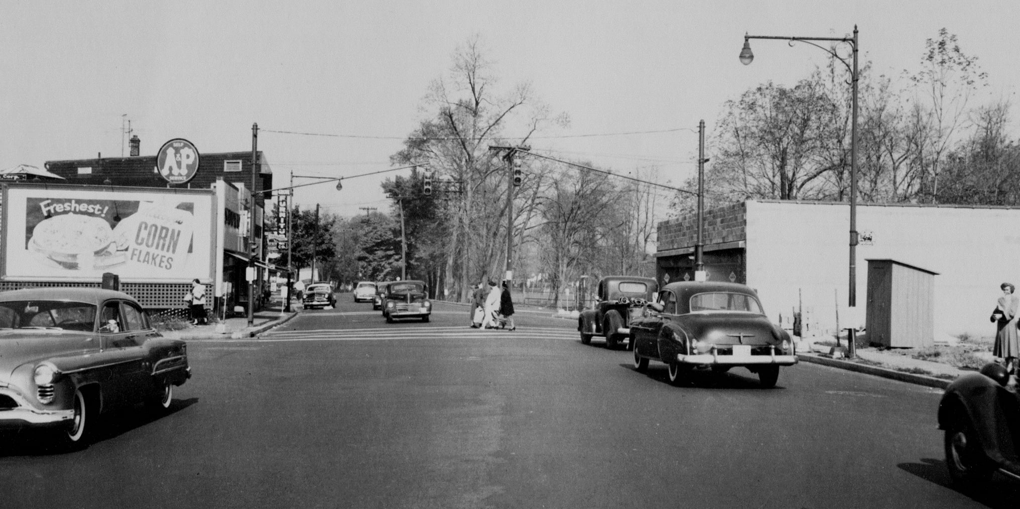 Above: The city of Bloomfield installed a number of signalized crosswalks on Broad Street and Belleville Avenue in the 1940s. These rather charming Crouse-Hinds installations employed 8″ vehicular heads with Kopp WAIT and WALK lenses. This crosswalk is at the former A&P on the corner of Broad and Warren. I can recall the WAIT-WALK signals were still operating as late as the 1980s, but eventually were replaced by square ped heads. The original overhead vehicular lights held on until 10-15 years ago. Today, the original masts still remain. Note the USE CROSSWALK AT LIGHT sign in the first photo.