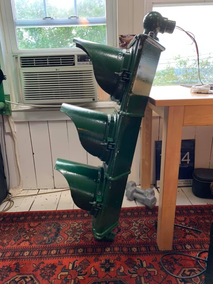 In 2020, collector John Rosenblatt made a splendid estate sale find in New Jersey. He scored an early 1930s single-face traffic signal by American Gas Accumulator. The seller informed John that the light was retired in the late 1960s from the corner of Knickerbocker & Clinton in Tenafly. The Google Street view of the intersection at the time of this writing shows signals are at least 50 years old, and one of the poles is a steel pole that probably goes all the way back to the ’30s, so the history provided by the seller could very well be accurate.