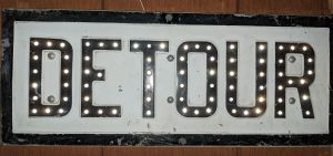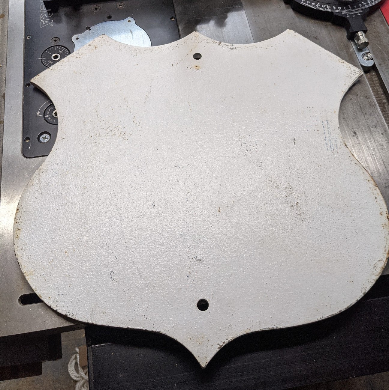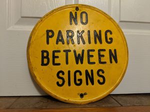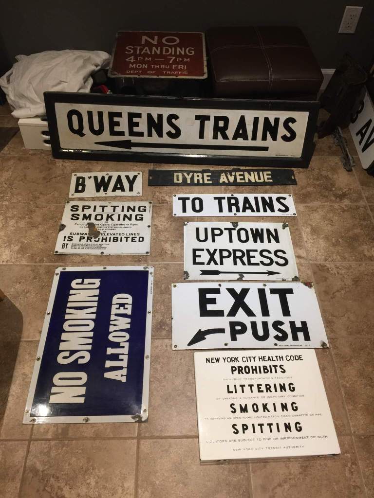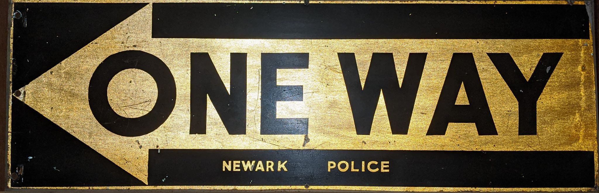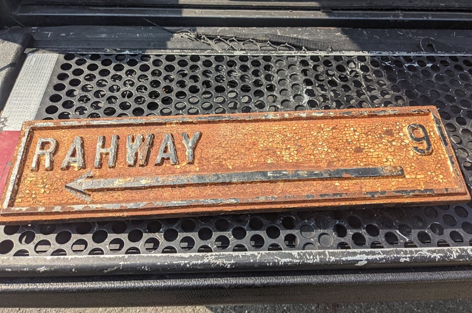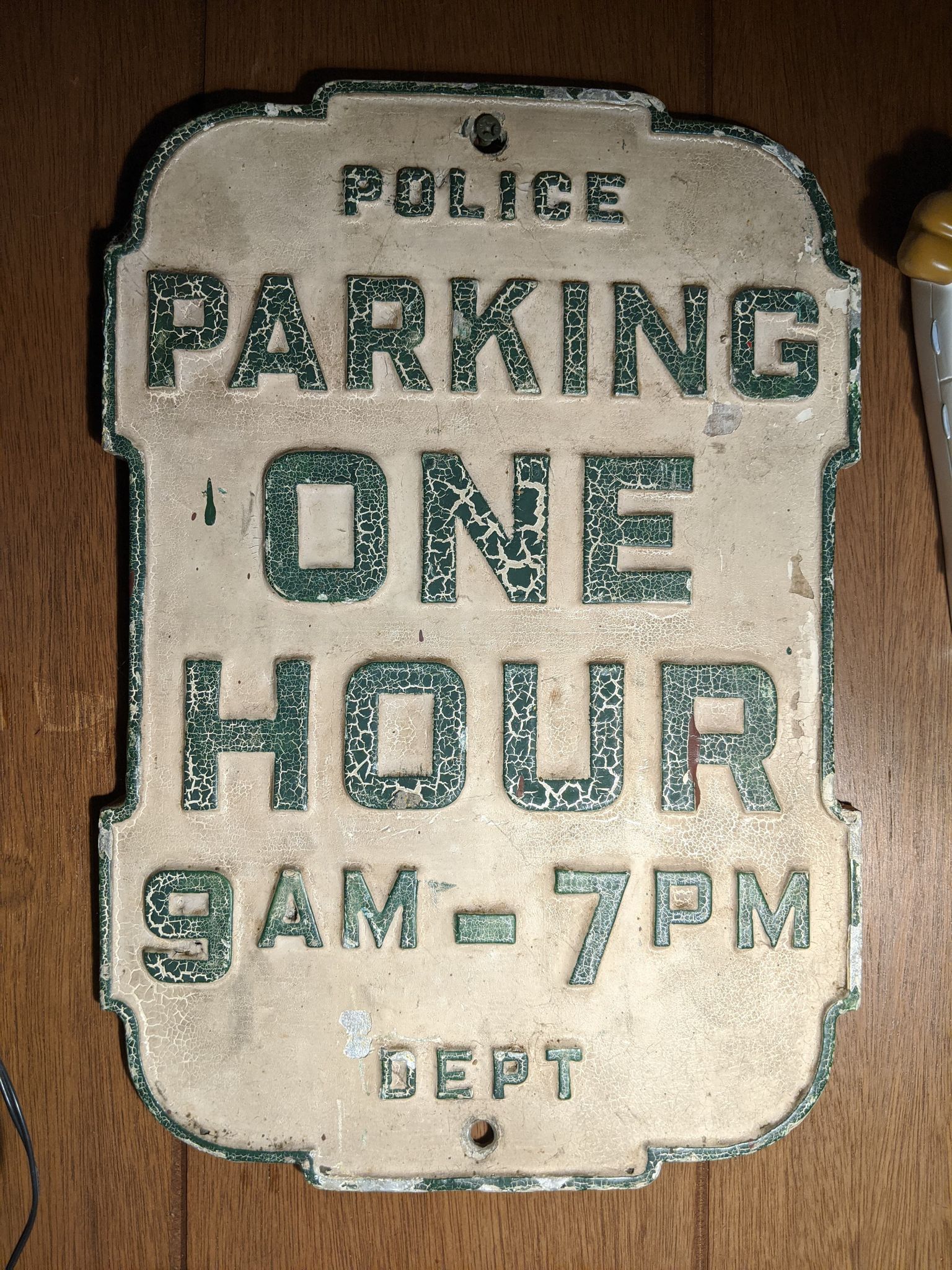 Ed has some really wonderful regulation signs. The cast One Hour Parking sign is from Atlantic City. The cast round STOP is Jersey-specific, and looks similar to one Ben Kranefeld photographed in a someone’s front yard.
