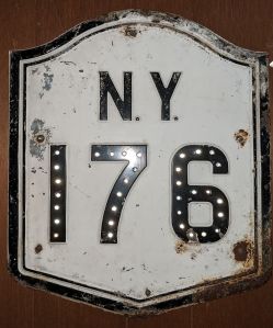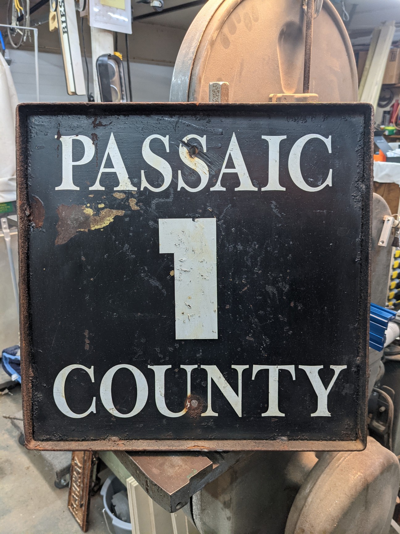 I recently tipped Ed off to this old porcelain “Passaic County 1” bridge marker, which he gratefully snatched up. Hmmm, why didn’t I buy it? Examples of these signs can be found on the excellent Alp’s Roads website.