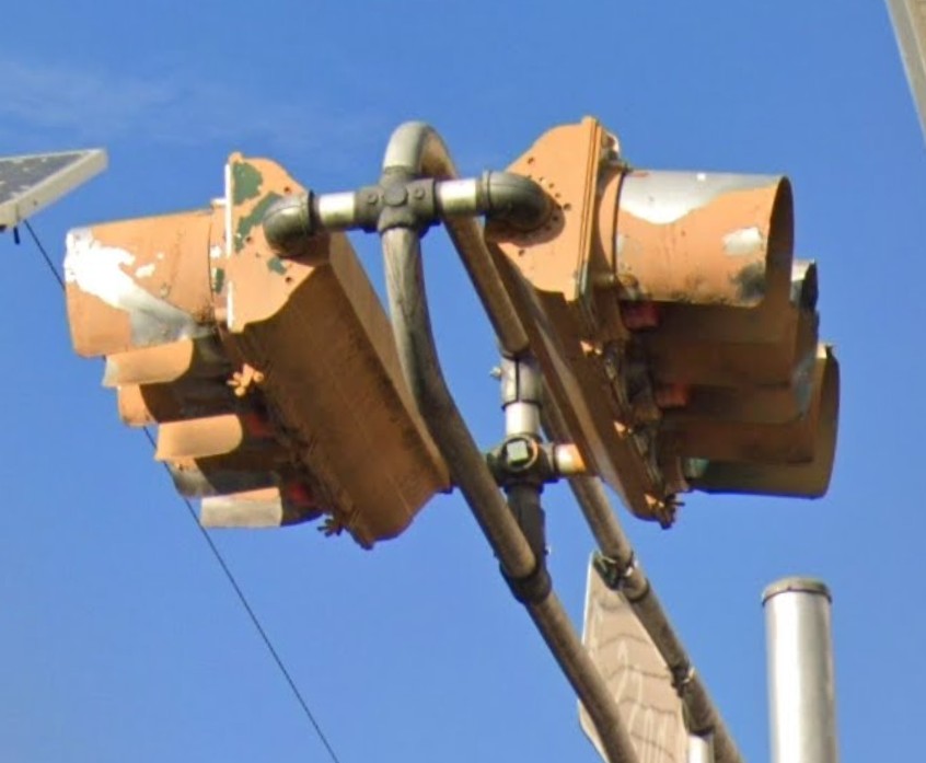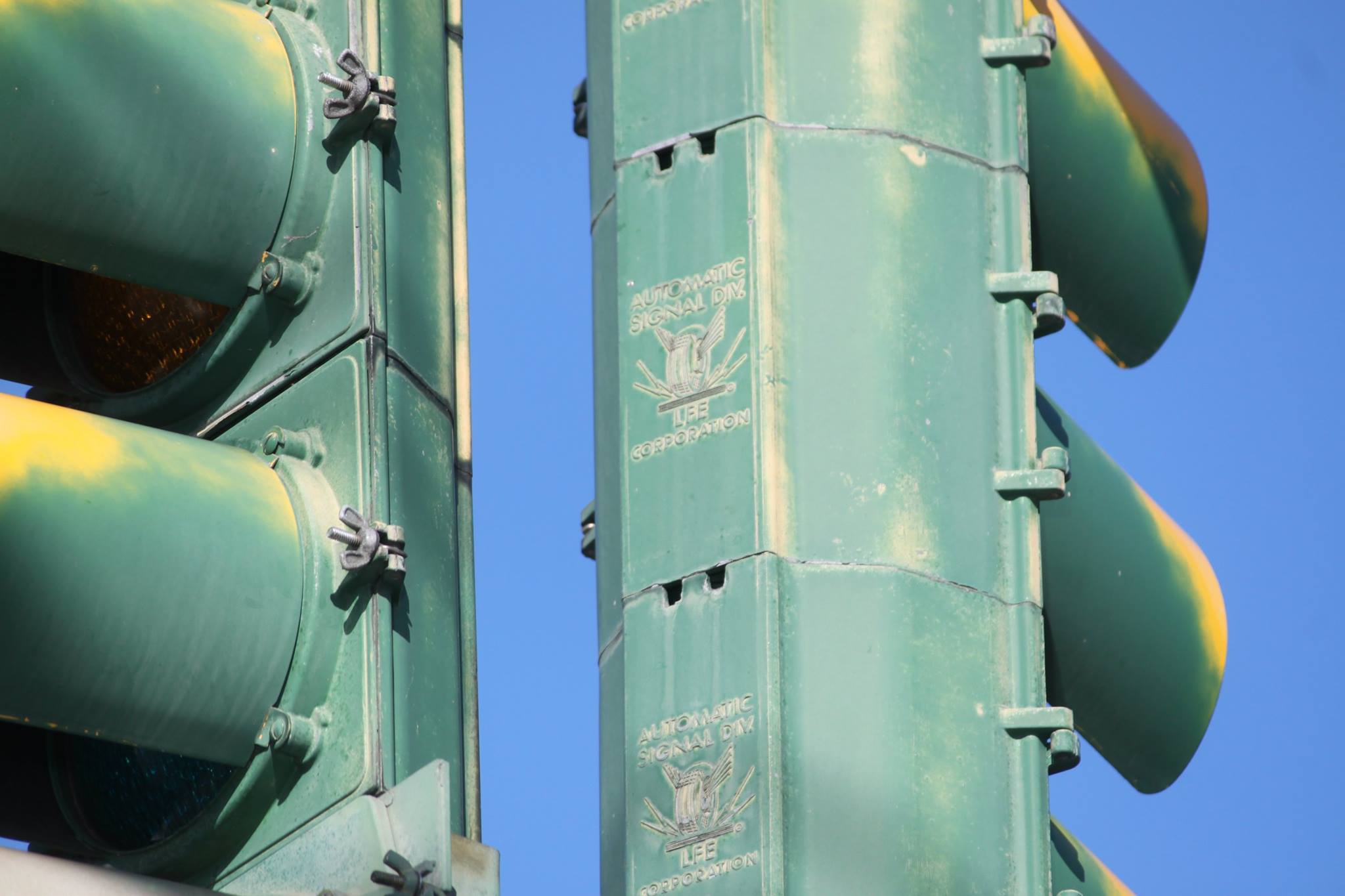 In 2017, Steve Conboy sent me a great set of photos that he took of a truss rod signal installation in Totowa, NJ – a traffic light that I am very familiar with. The 8″ lamps are early LFE-Automatic incandescent signals (check out the cool logo on the closeup photo), from the late ’60s or early ’70s, while the 12″ arrows are by Marbelite. I really dig the green fading to yellow. Great photos as usual, Steve!