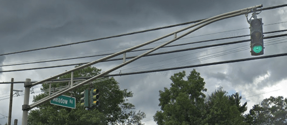 The first truss rod mast arms that did not have guy wires may have been installed as early as 1949 or so. They have been the standard way to suspend signals in New Jersey, whether vertical or horizontal, since the mid ’50s. Today, they are still widely used in new installations, although tubular mast arms are equally common. Most new NJ installations today use a combination of truss and tubular masts.