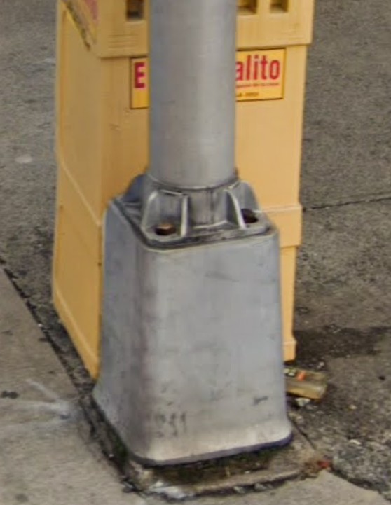 I was alerted to the above intersection by the keenly observant collector Kasey J, who noted that these signals in Paterson (along with another pair at this corner) appear to be Hornis or old Marbelites. On closer look, I could tell by the door shape that these were Marbelites with the “Phantomless” reflector systems, dating to about 1948-50. The aluminum poles and trombone-style masts here do appear to be old and original, so I think this is one of the earliest examples of a non guy-wired signal mast.